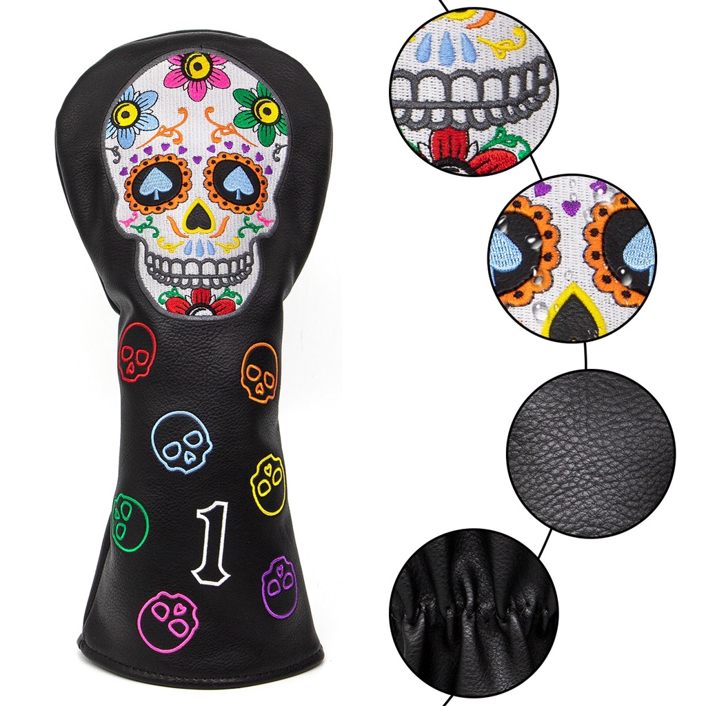 Golf Club Headcovers #1 #3 #5 Wood Head covers Skulls Design Driver Fairway Hybrid Woods Headcover Black PU Premium Leather Head