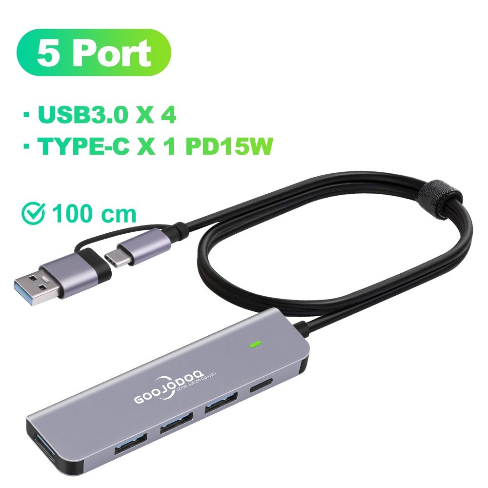 Goojodoq 2-in-1 5Port USB 3.1 Type-C High Speed USB C Hub with Hub 3.0 2.0 5Gbps TF SD Reader Slot PD for MacBook Pro Air USB C Splitter