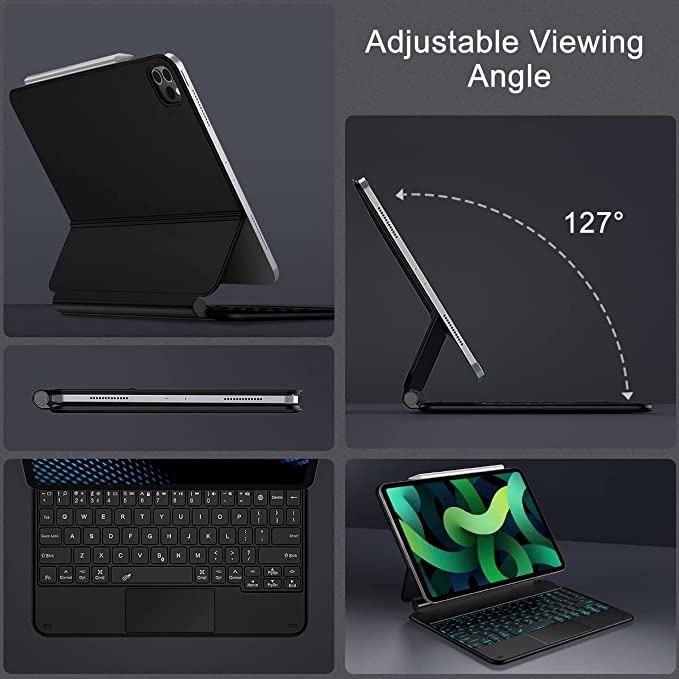 Goojodoq Rebound Magnetic Keyboard Case iPad Case with iPad Keyboard Compatible with iPad Pro 11/iPad Air 5/4 Cantilever Stand, Precision Multi-Touch Trackpa