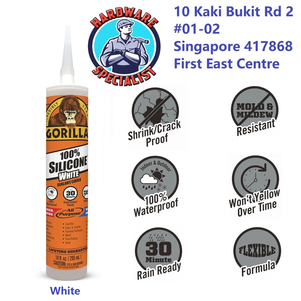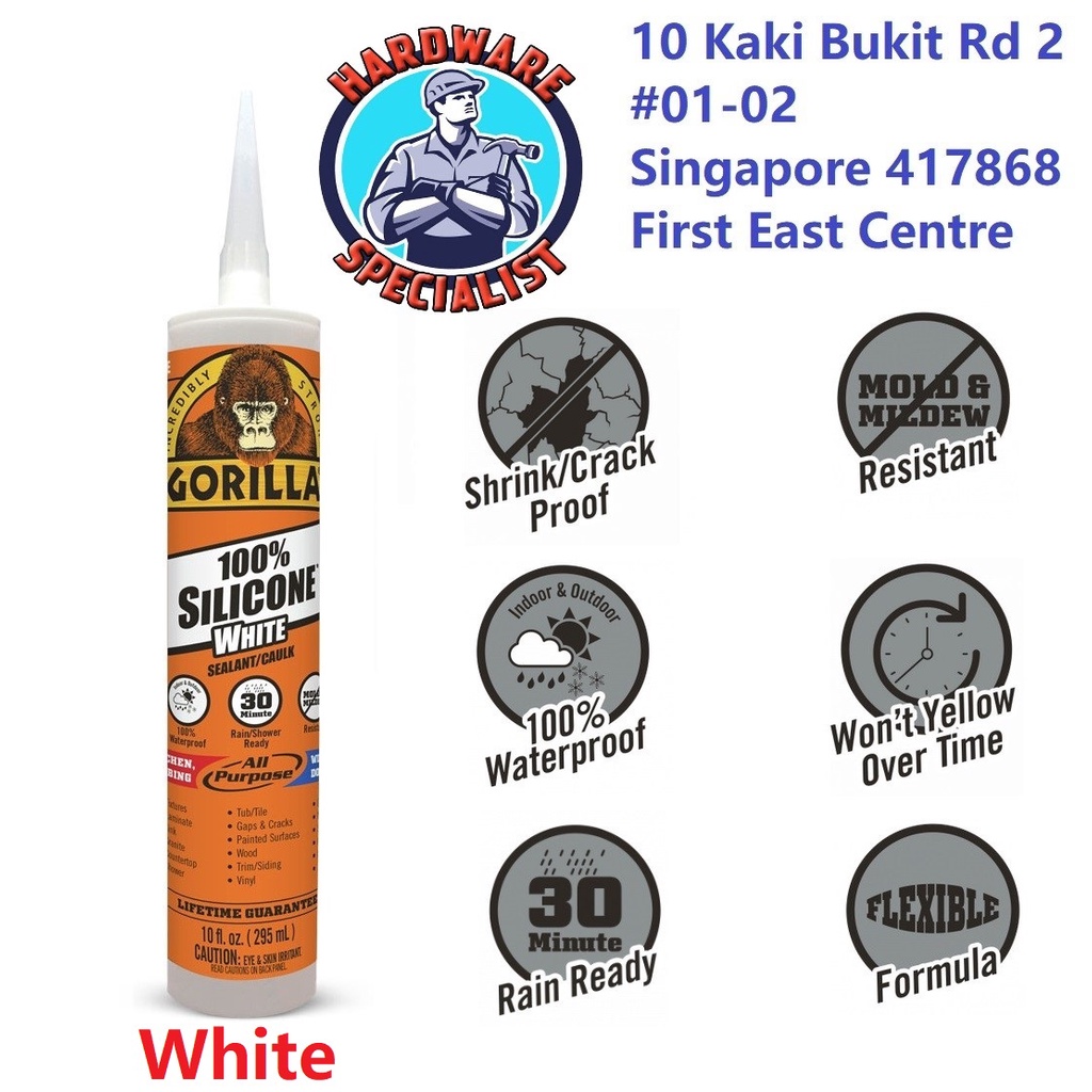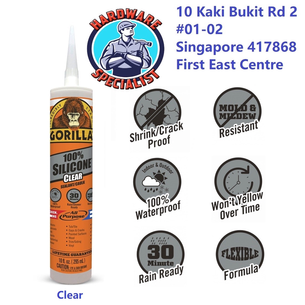 Gorilla Clear Silicone Sealant / White Silicone Sealant - Mold Resistant, Crack Proof, Wont Yellow, Flexible 295ml