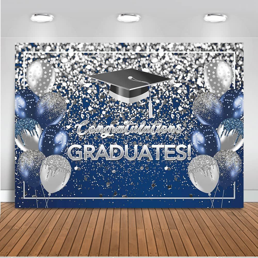 Graduation Background 7x5 Feet Royal Blue and Gold Flash 2024 Graduation Party Decoration Congratulations Graduation Photography Background