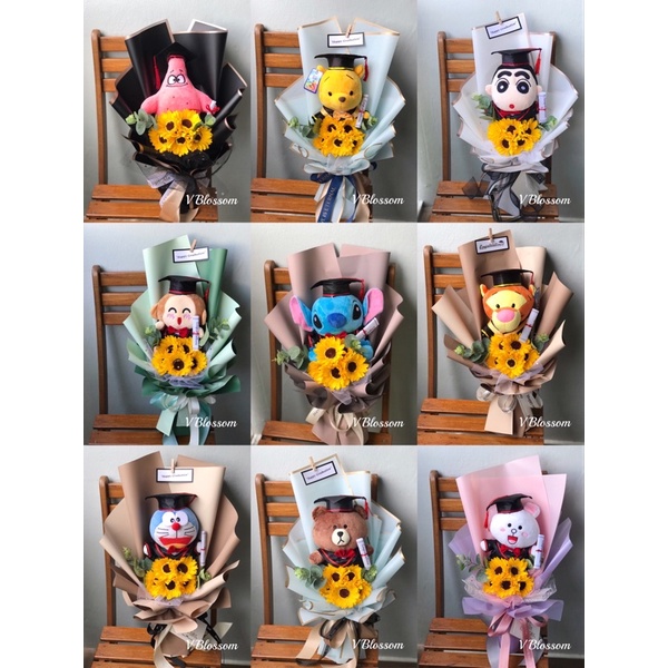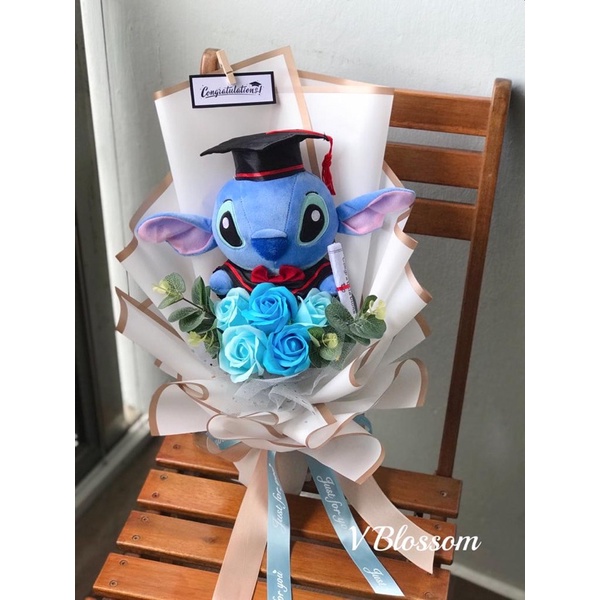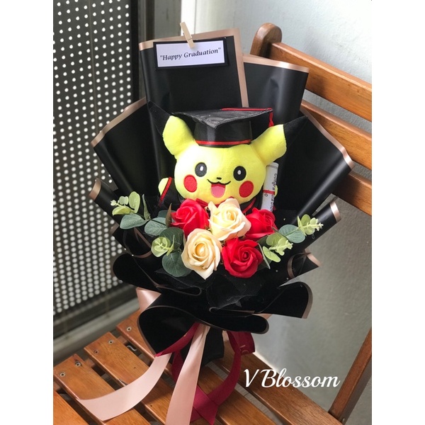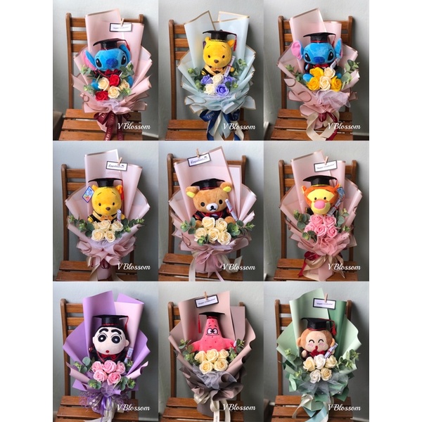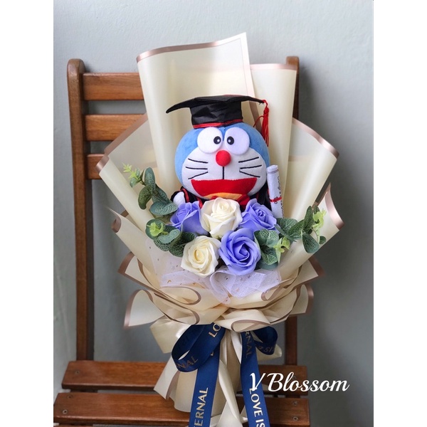Graduation Bouquet by Artificial Soap Flower and Plush Toy / Graduation Gift