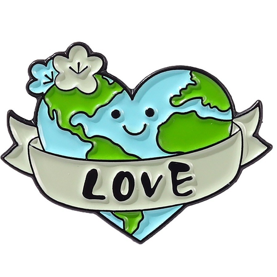 Green Earth Heart-shape Enamel Brooch Be Kind Hug Earth Lapel Pin Badge Environment Jewelry Gifts For Earth Day