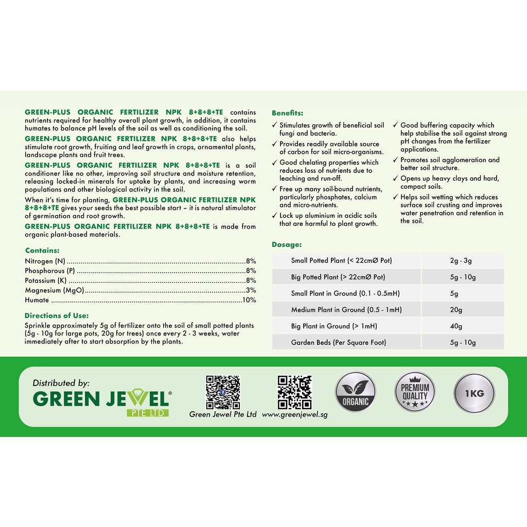 Green Jewel Green Plus NPK 8+8+8+TE - Organic Fertiliser for Overall Growth, 1KG