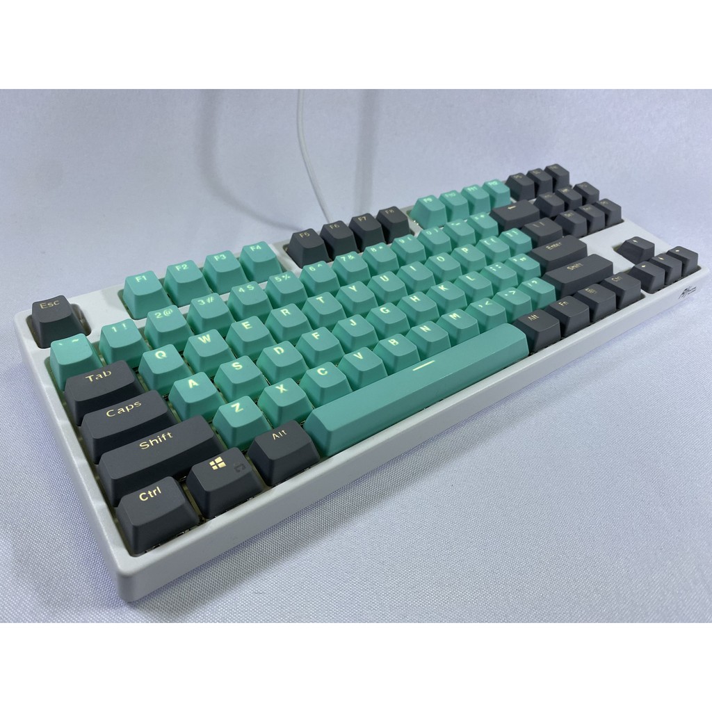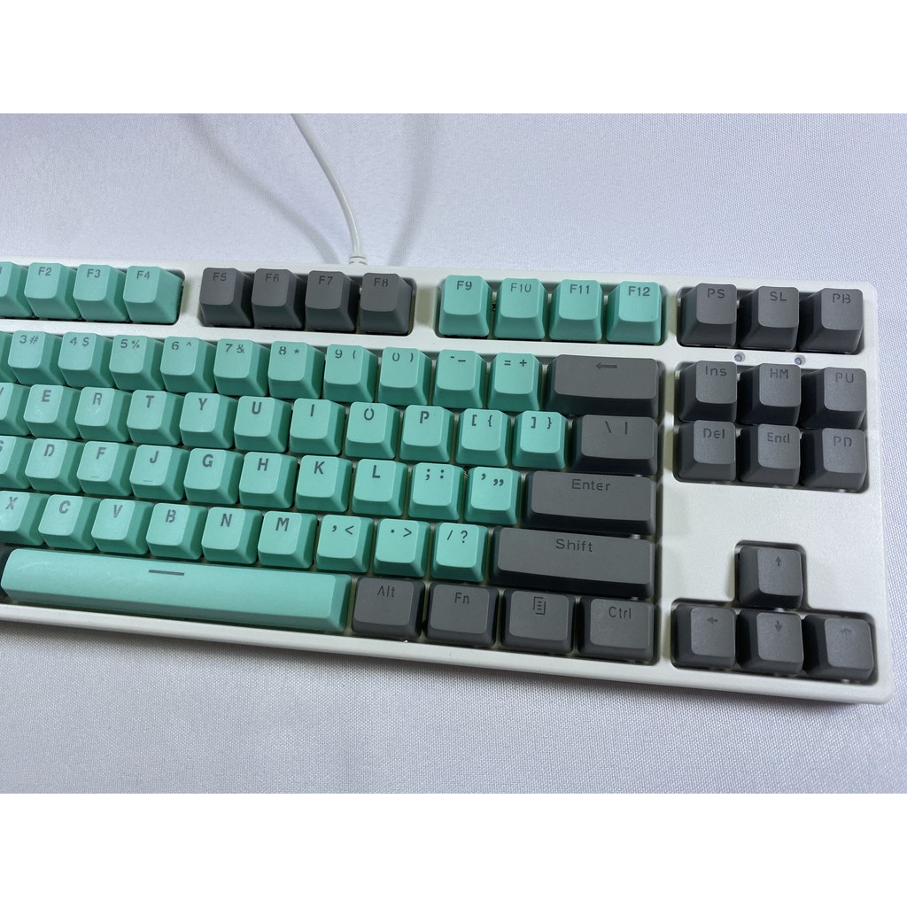 Grey cyan Keycaps 87 key PBT Keys Keycaps Mechanical Keyboard Keycaps Double Backlit Word Transparent Color Gaming keycaps for US Layout Keyboard for Cherry MX (Only sell keycaps)