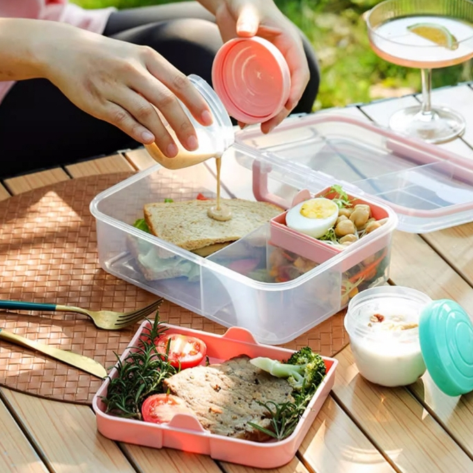 Grid Square Lunch Box With Salad box 211 Bento Box Plastic Compartment Lunch Box 211 Meal Plate Children'S Meal Plate Weight Loss Meal Plate Sandwich Meal Box Student Lunch Box