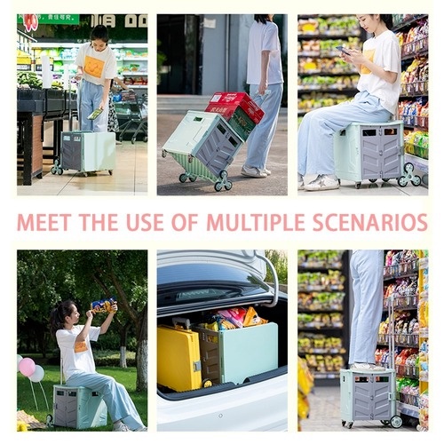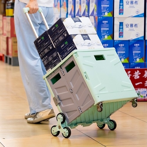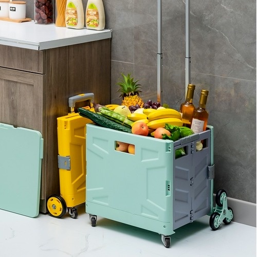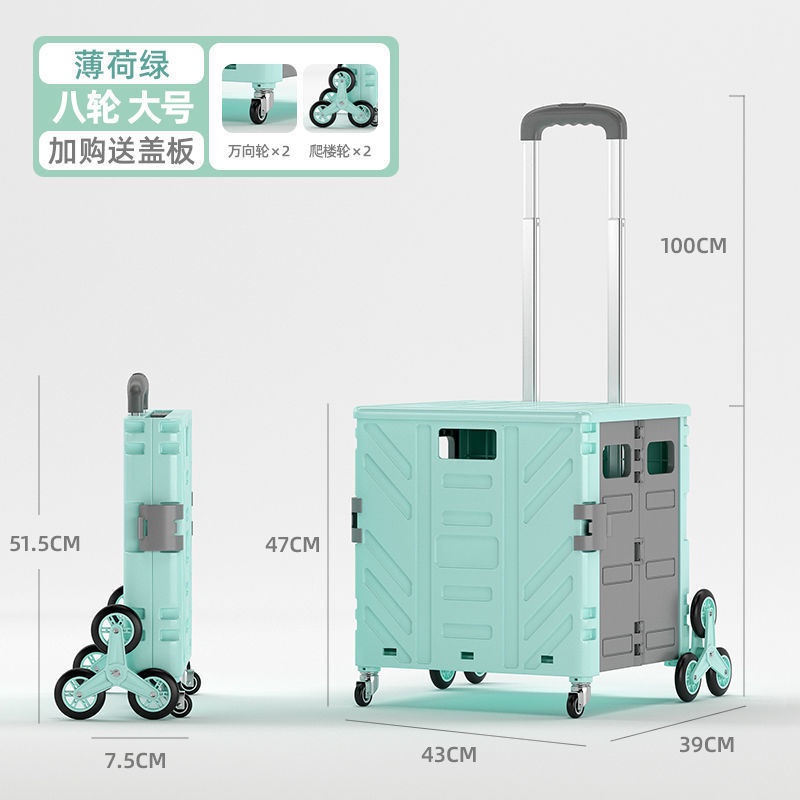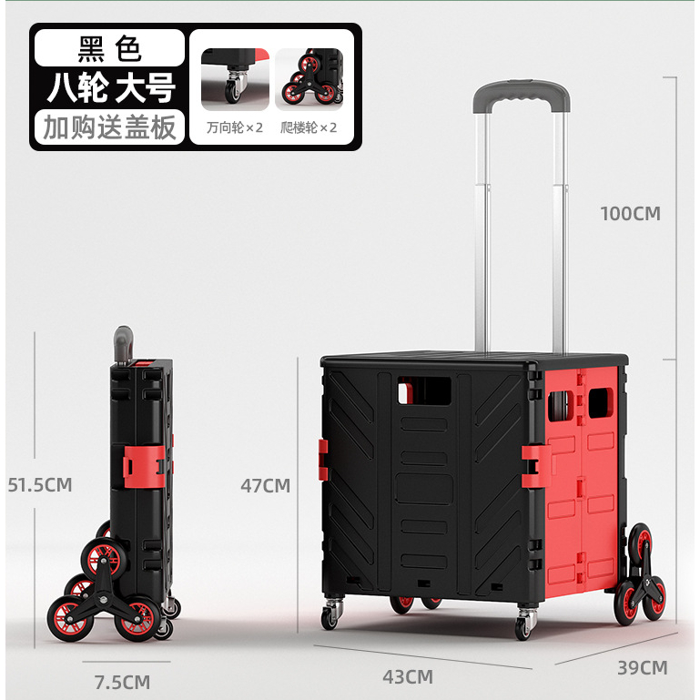 Grocery Trolley Shopping Cart Supermarket Foldable Basket Storage Movable Climbing Box 4 Wheels Market Travel Bag