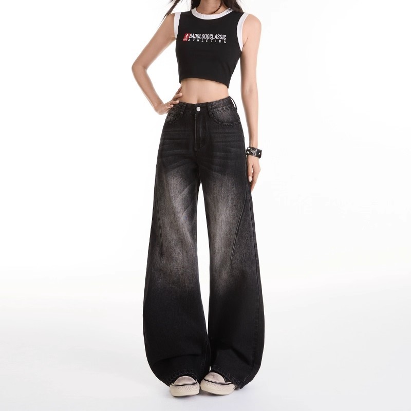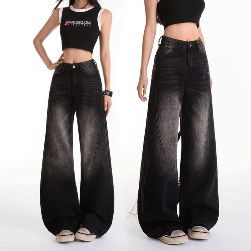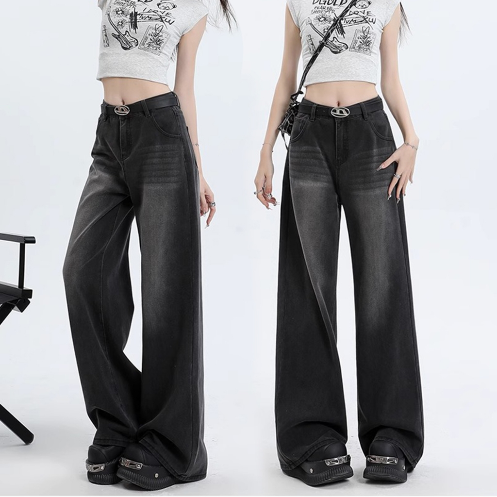PLUE SIZE~Long jeans for women Cargo white blue BLACK denim straight wideleg loose Korean style highwaist casual pants HOT