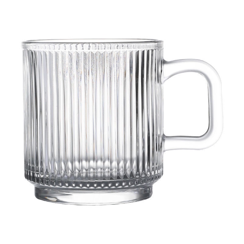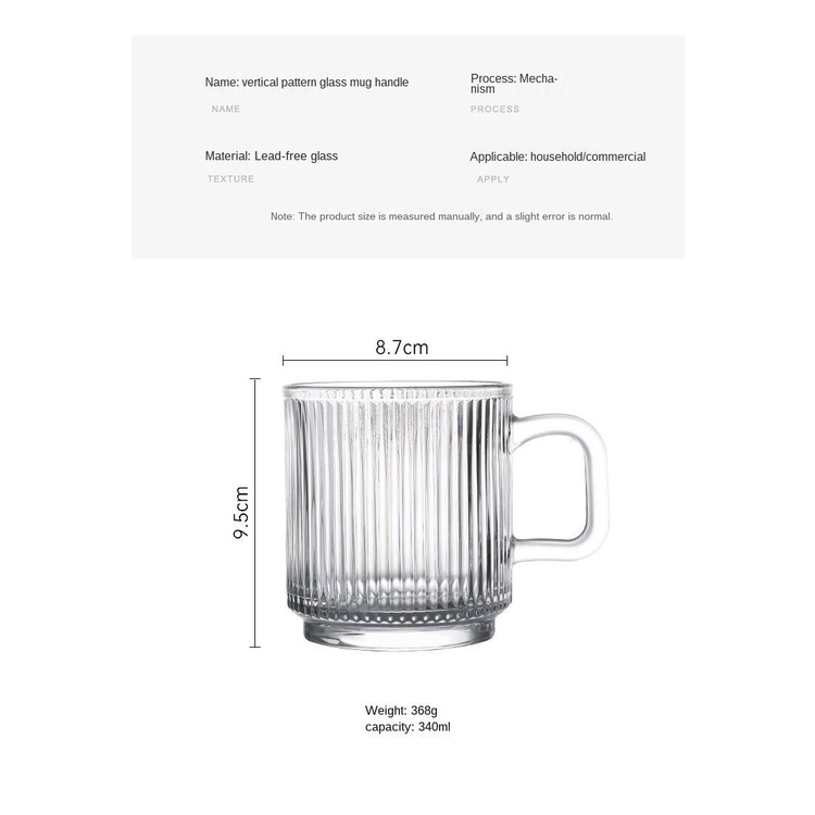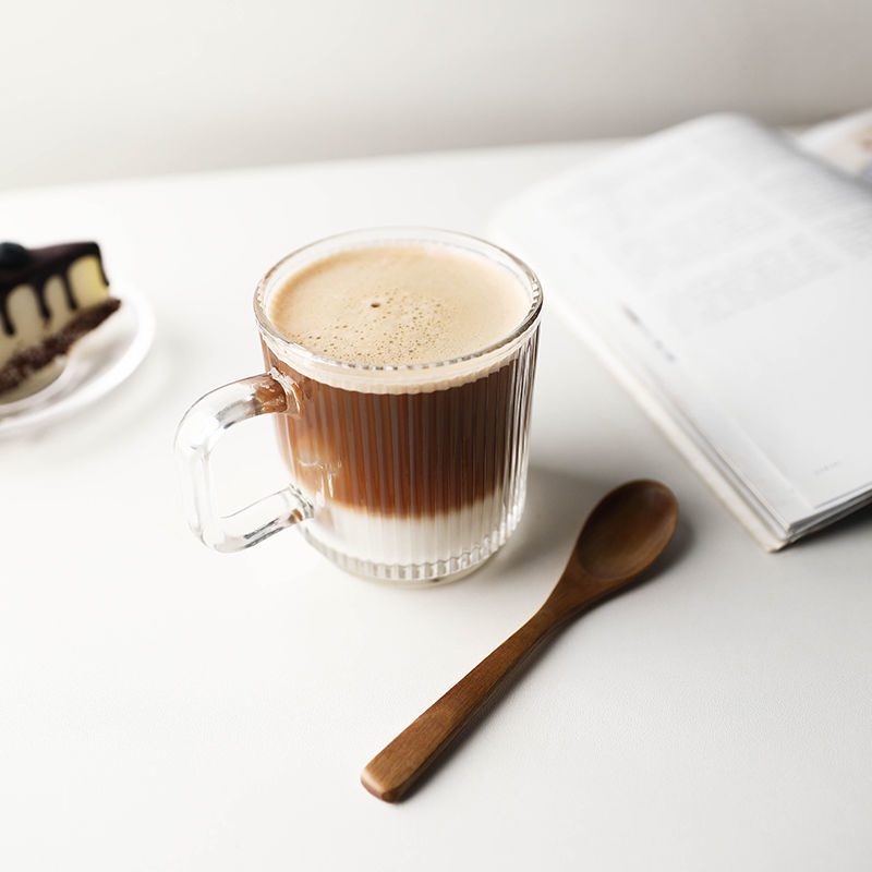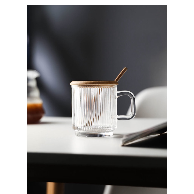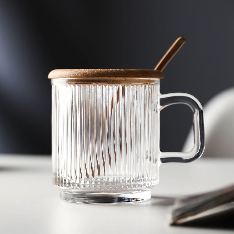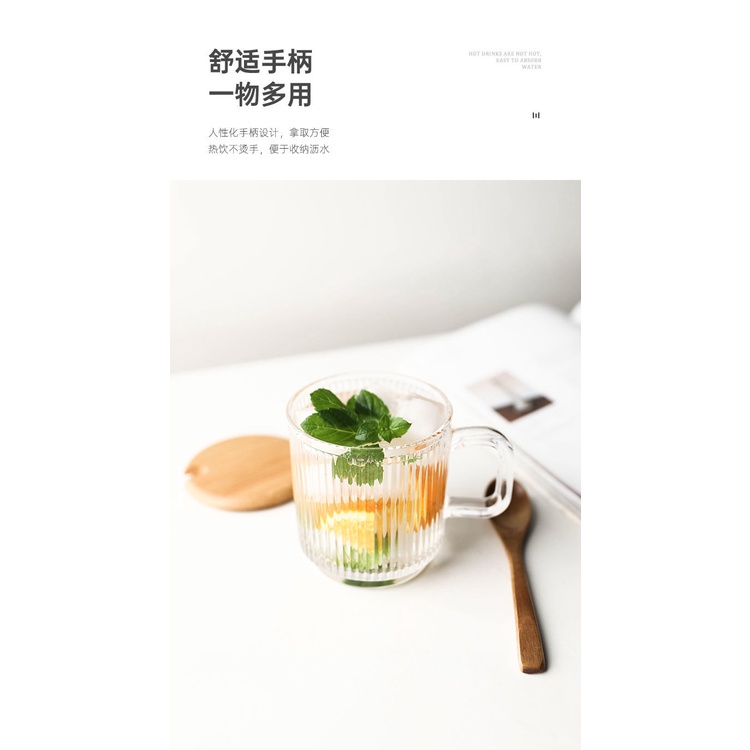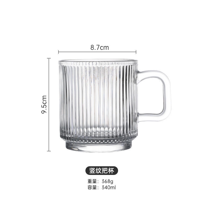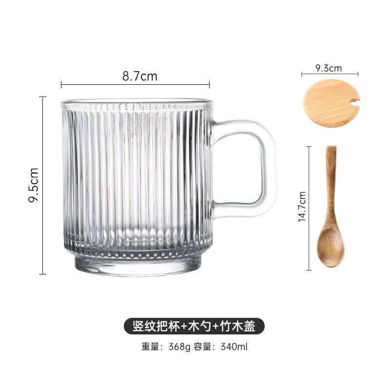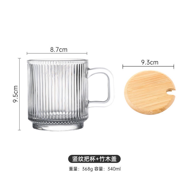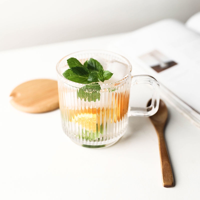 Ins Wind Vertical Stripes with Handle Simple Home Transparent Glass Ice Latte Coffee Cup Cold Drink Mug Water Glass Juice-Cute Creative Dust-Proof Water Cup with Lid Coffee Mug Cover Home Office Supplies