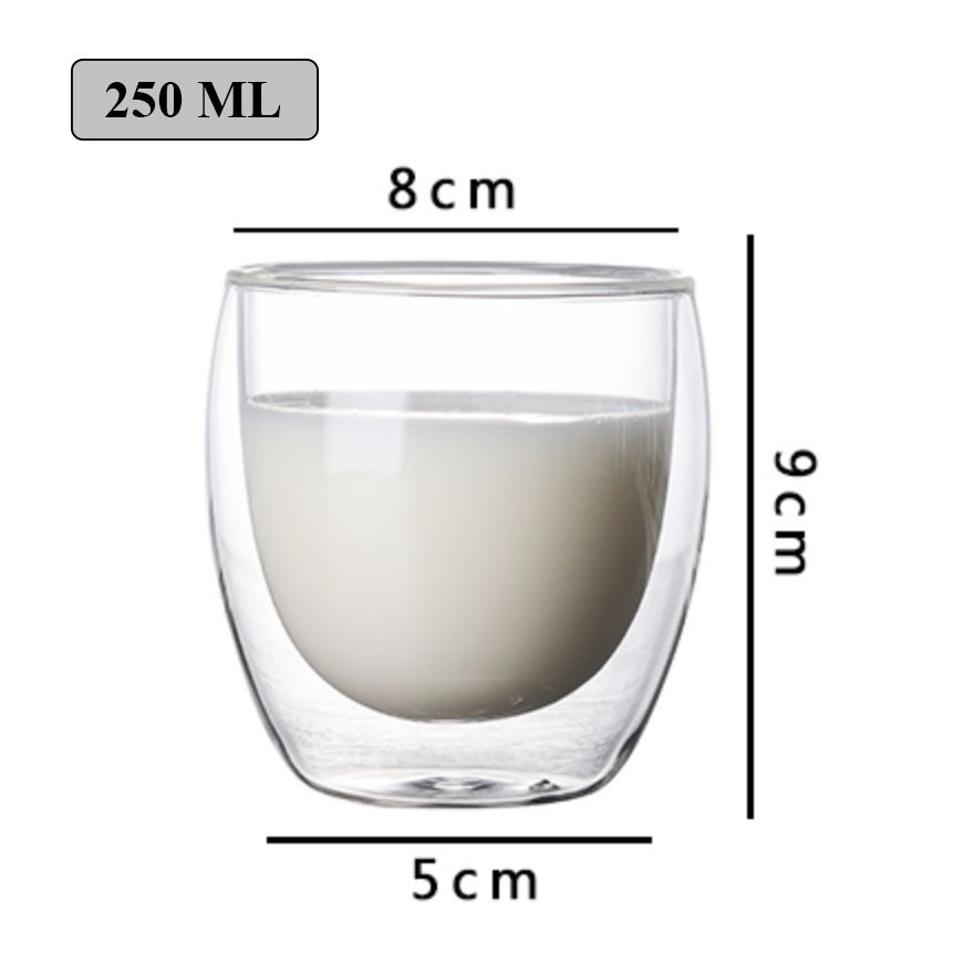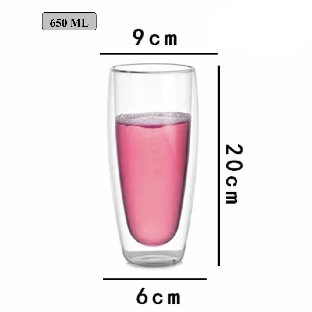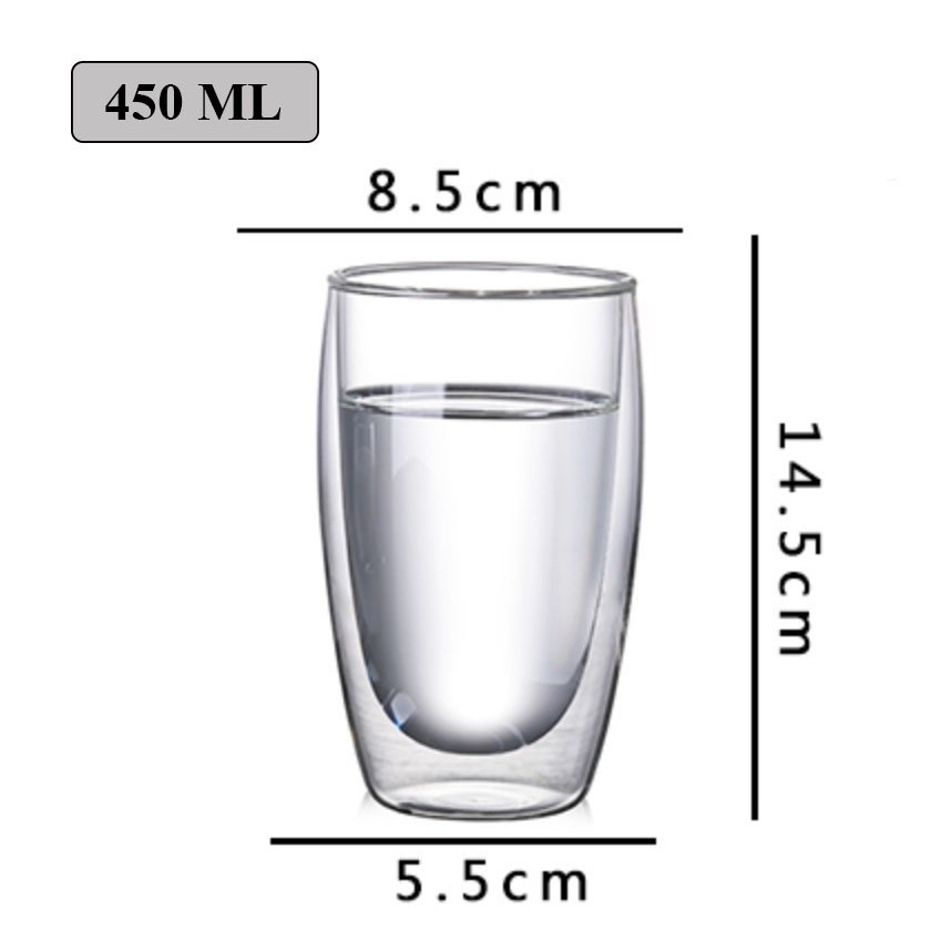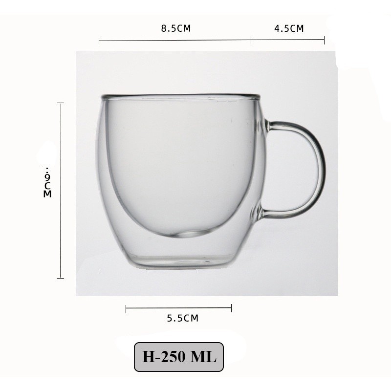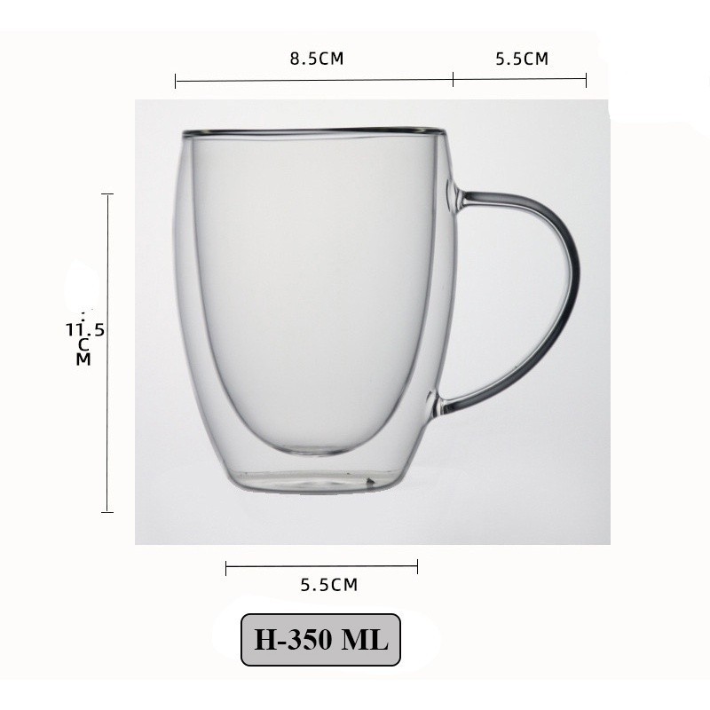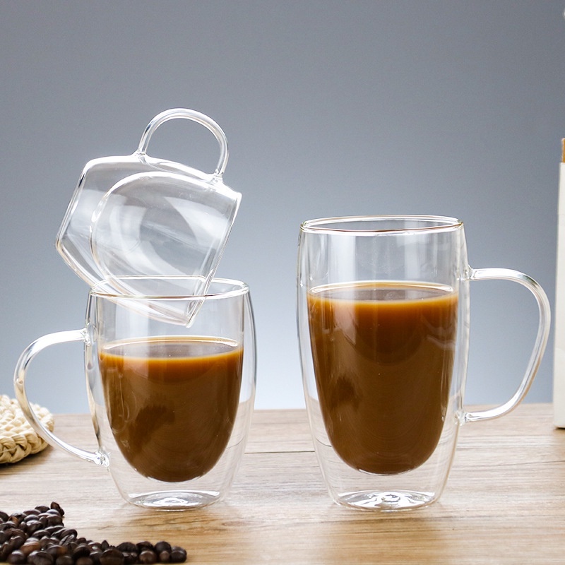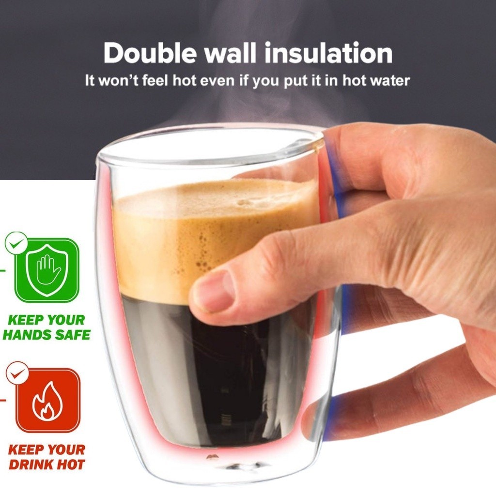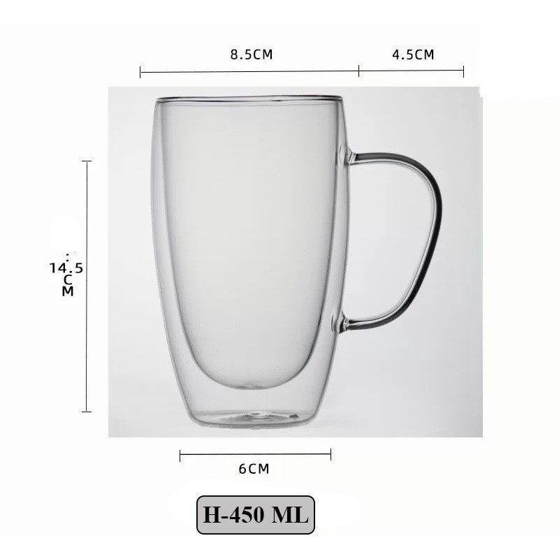 Double Wall Insulated Glass Tea Cup with Handle | Heat Resistant Coffee Cup 80ml 150ml 250ml 350ml 450ml 650ml