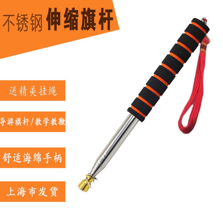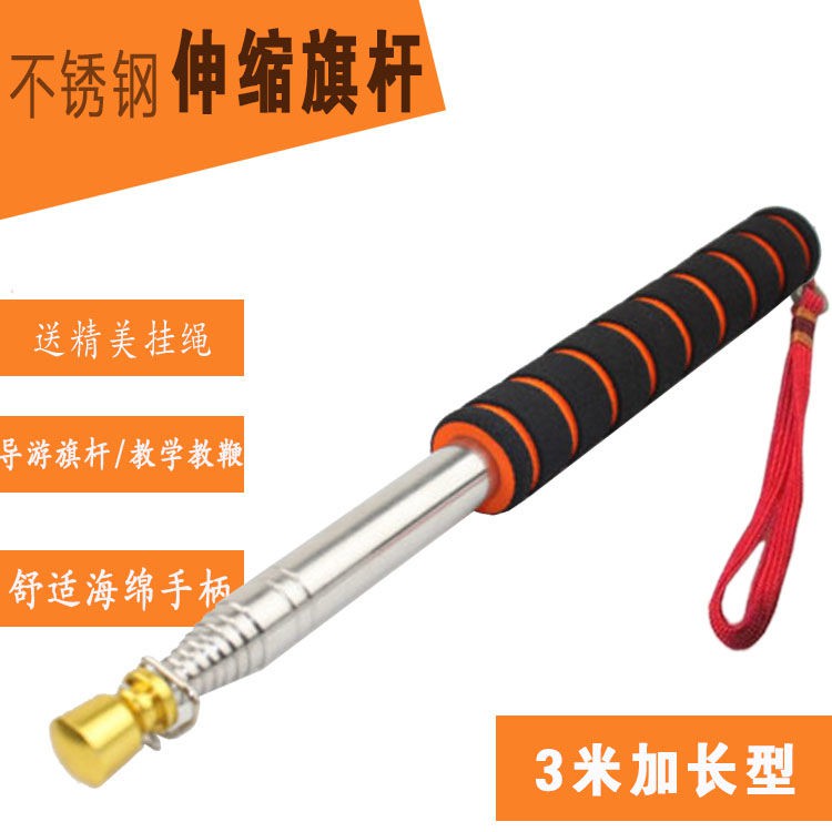 Guide flagpole 3 meters handheld retractable flagpole stainless steel outdoor high-end hand-cranked 2 meters pointer stick baton dedicated in the library