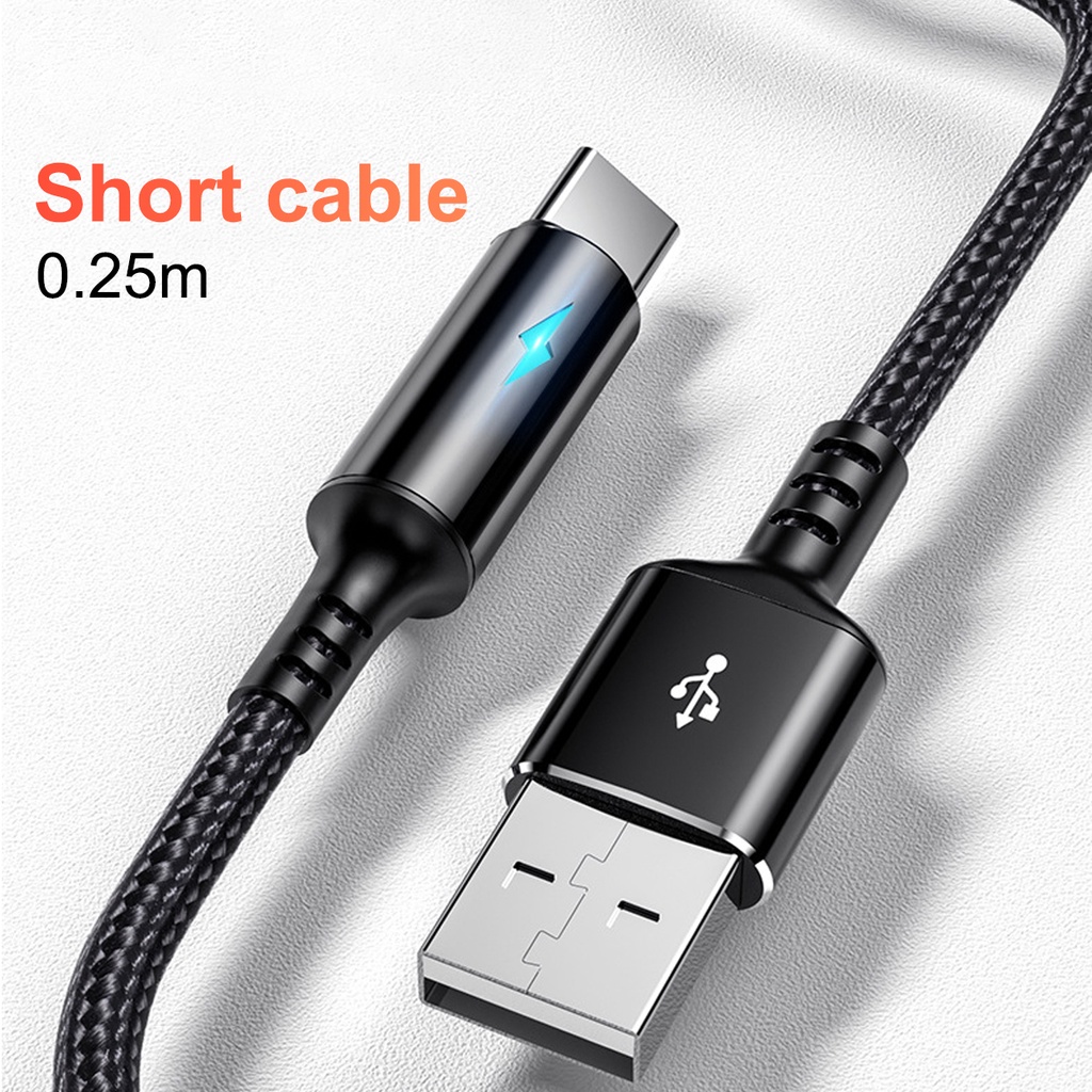 Guugei 25cm Short USB Charge Cable Micro USB Type C Cable For Huawei Android 2.4A Fast Charging Power Bank Phone Charge Cable With Indicator Light