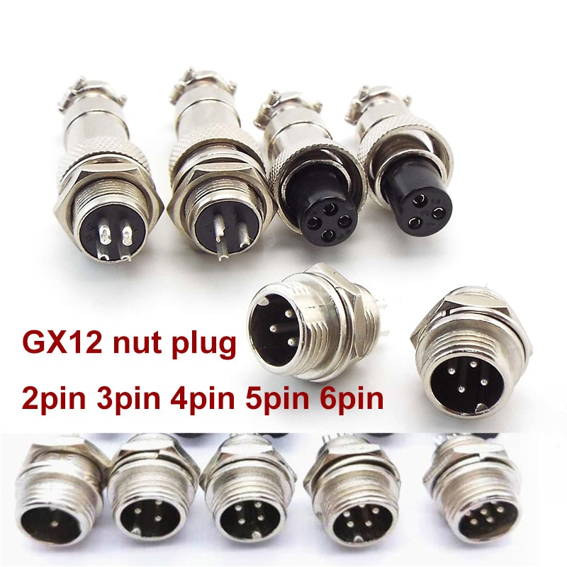 Gx12 Male Female Socket Plug Panel 12mm Connector 2/3/4/5/6 Pin Core Circular Aviation Power Adapter Nut Type