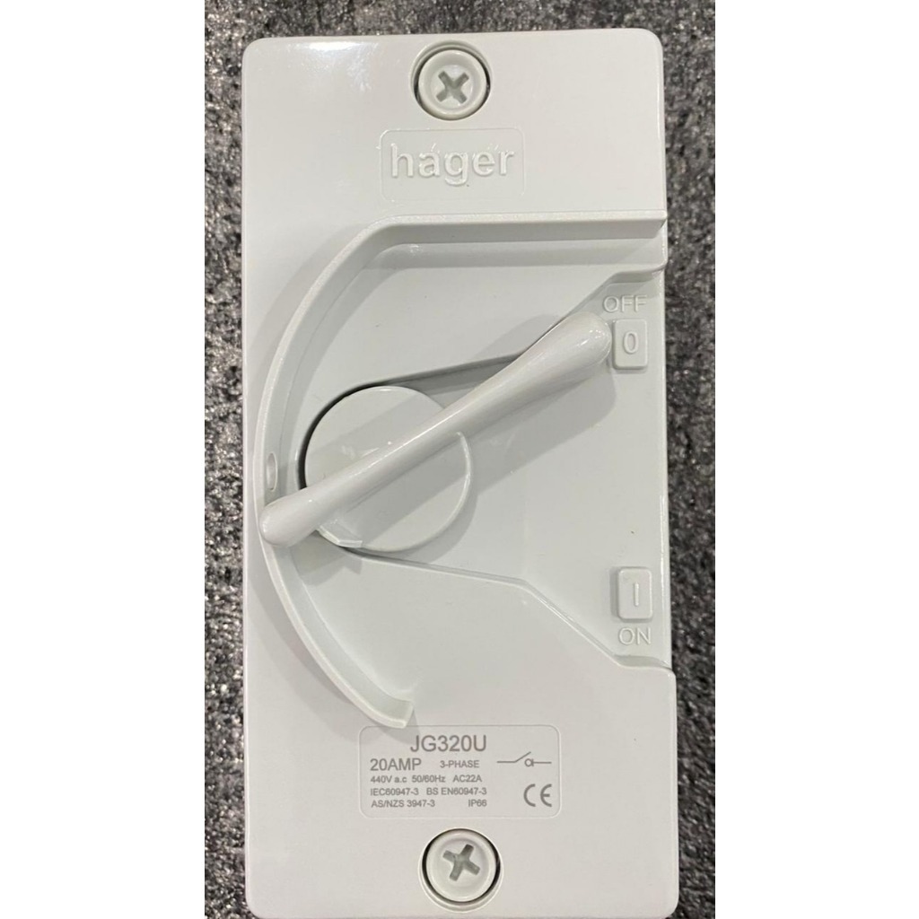 HAGER - 20A 3 POLE IP66 UTILITY ISOLATOR (JG320U)