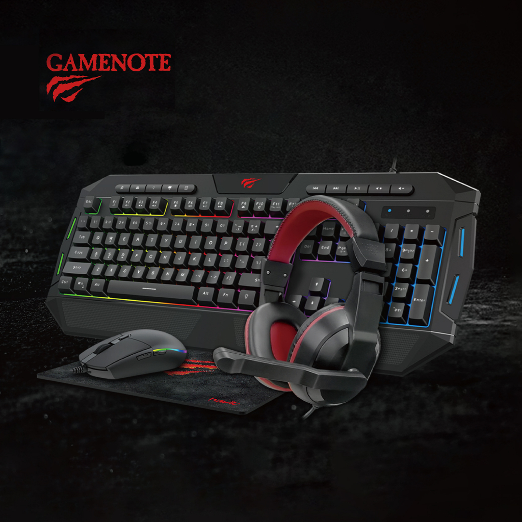 HAVIT KB501CM 4 in 1 Multi-Function Backlit Wired Keyboard, Wired Mouse, Wired Headphone and Mouse Pad Gaming Combo