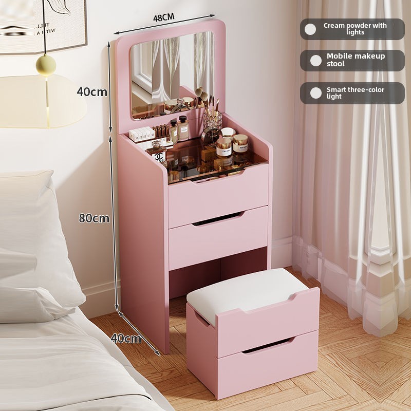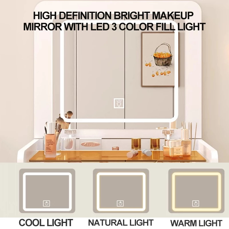 HDB Dressing Table Lighted Dressing Mirror Table and Chairs, Dressing Table with 3 Drawers, Lighted Mirror