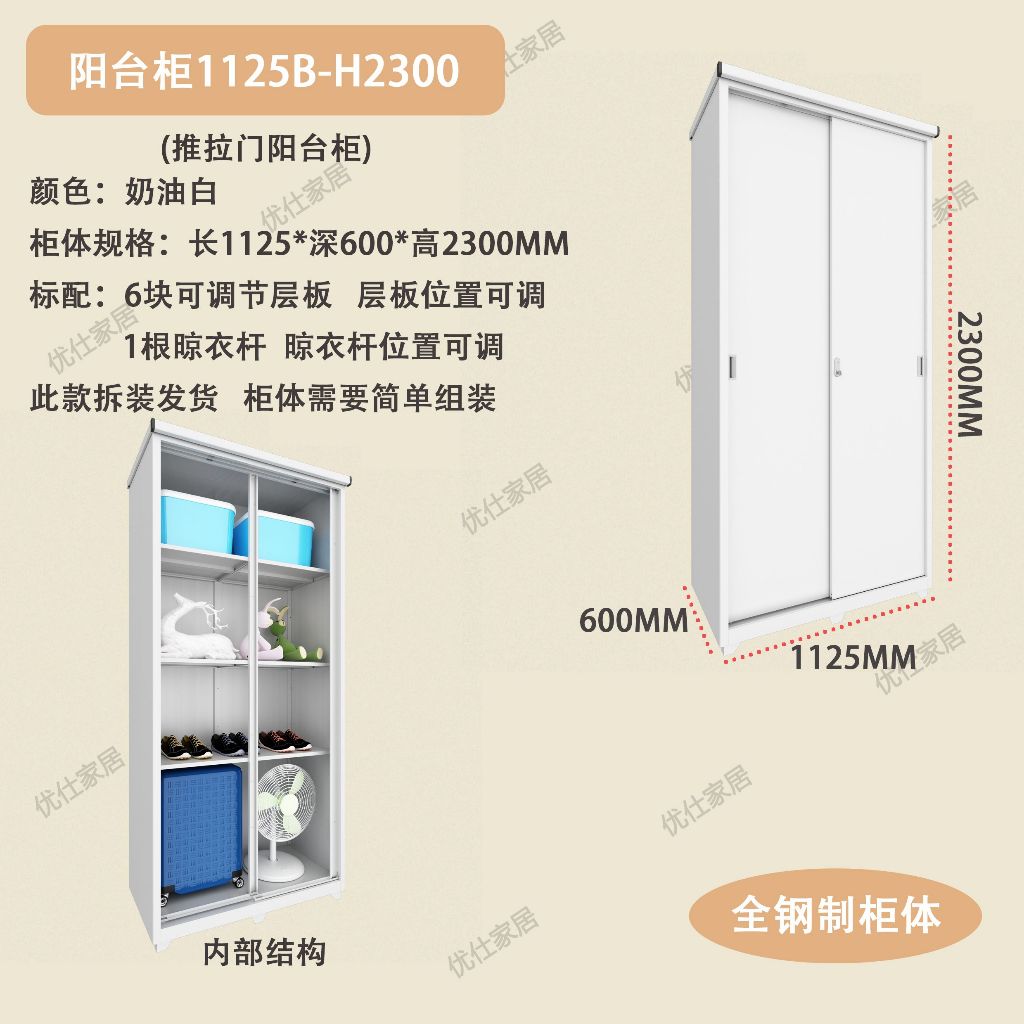 HDB Steel Balcony Cabinet Full Height Swing Door Cabinet Wardrobe Drawer / Storage Cabinet / Built-in Balcony Cabinet Outdoor Balcony Cabinet (Customized Size Available)