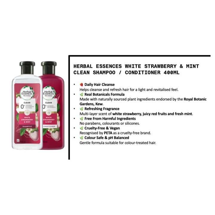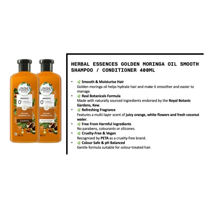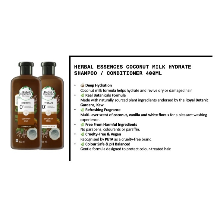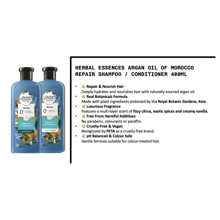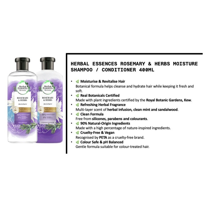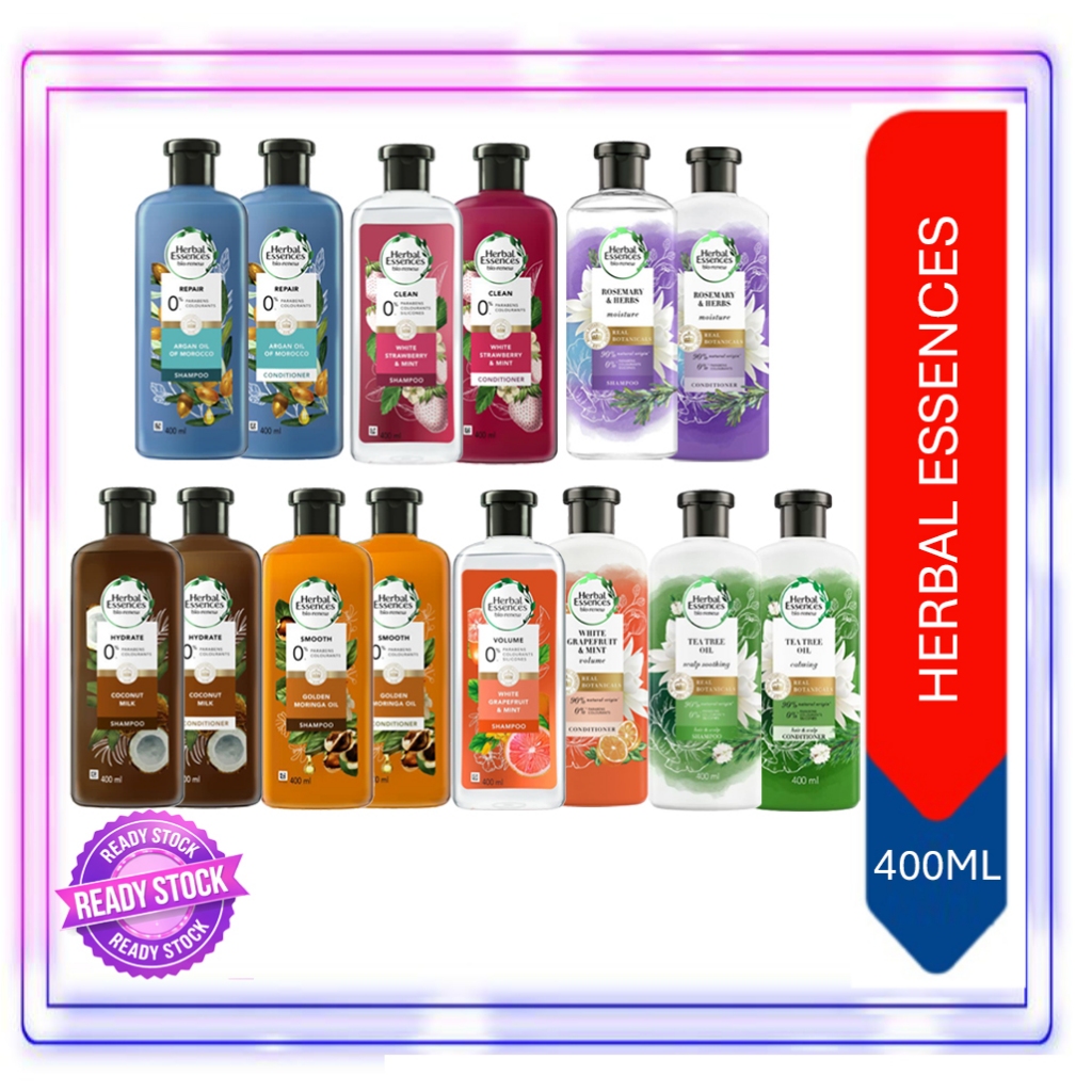 HERBAL ESSENCES SHAMPOO/CONDITIONER 400ML | REAL BOTANICALS | MOISTURE HYDRATE HAIR