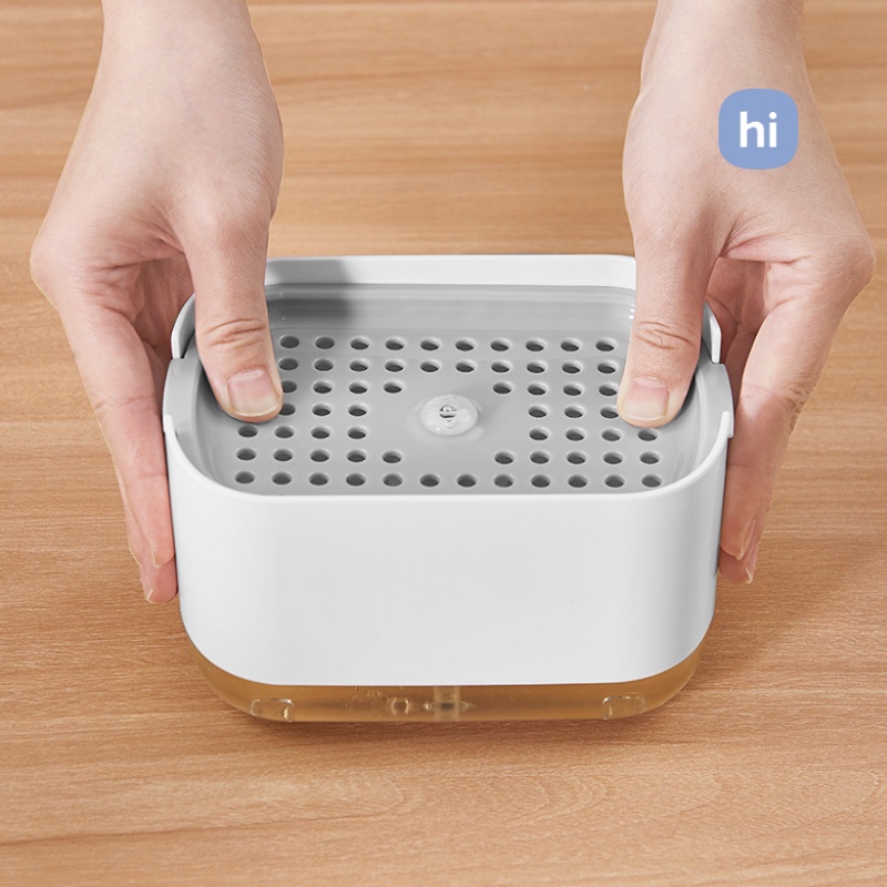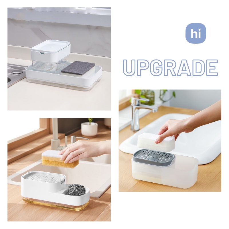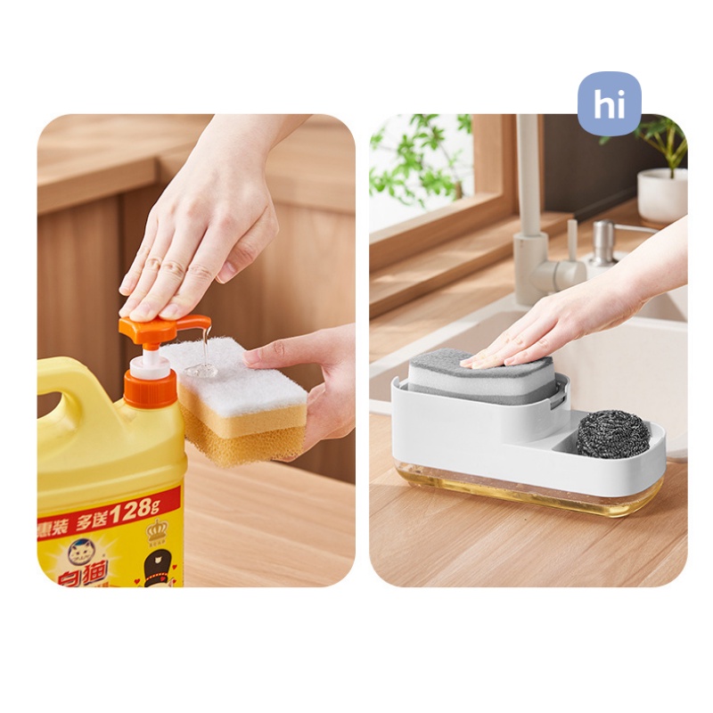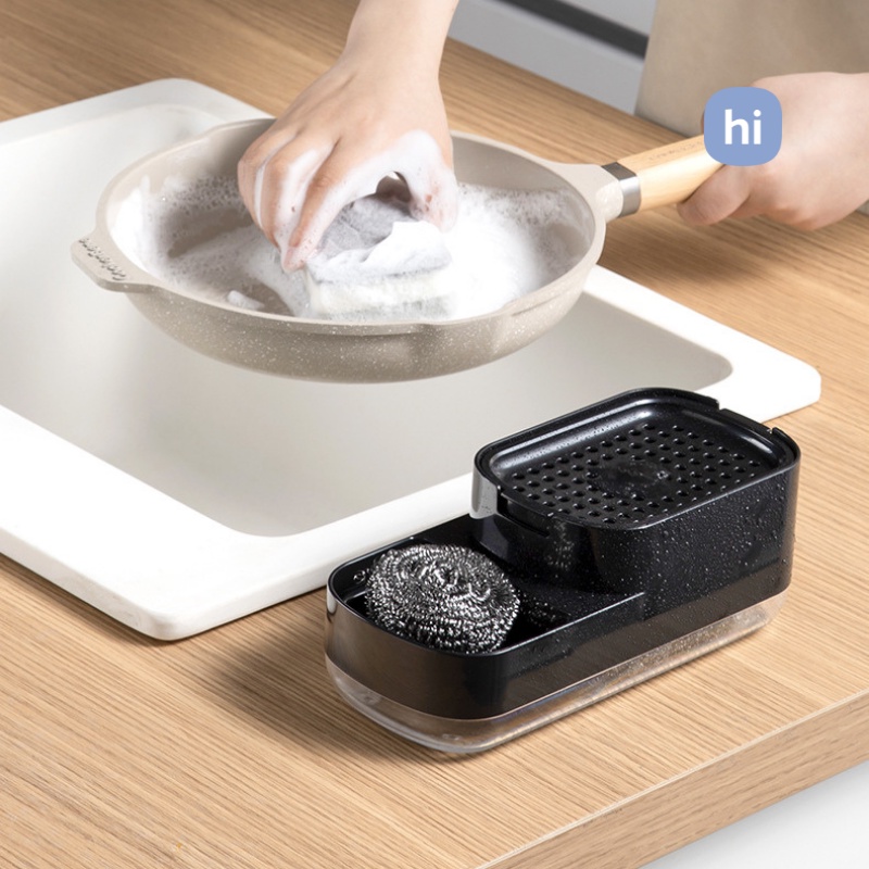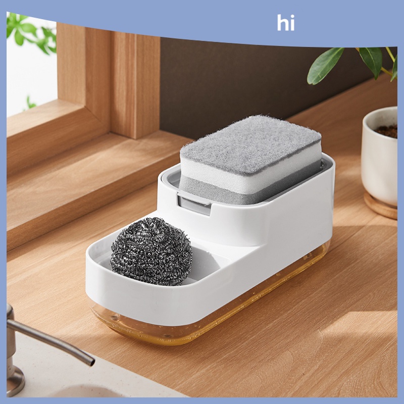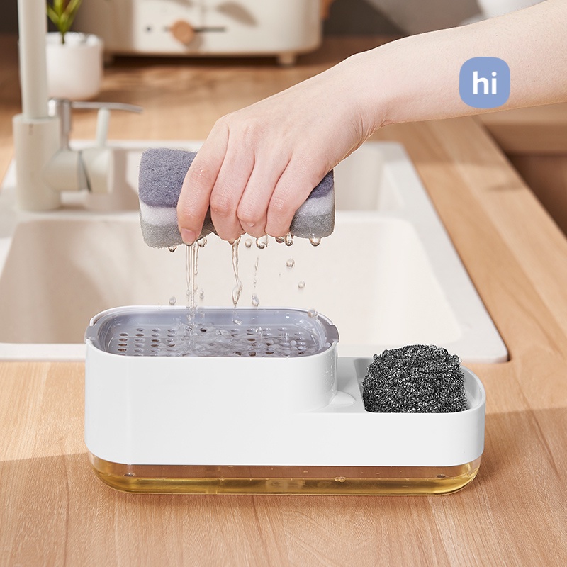 HI HOMES Kitchen 2-In-1 Dish Soap Dispenser Upgrade Press Type Manual Soap Box Detergent Dispenser Storage Box Sponge Storage Holder
