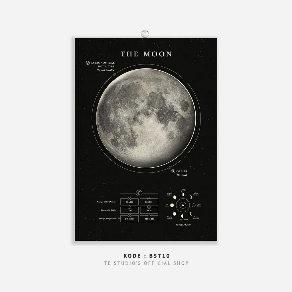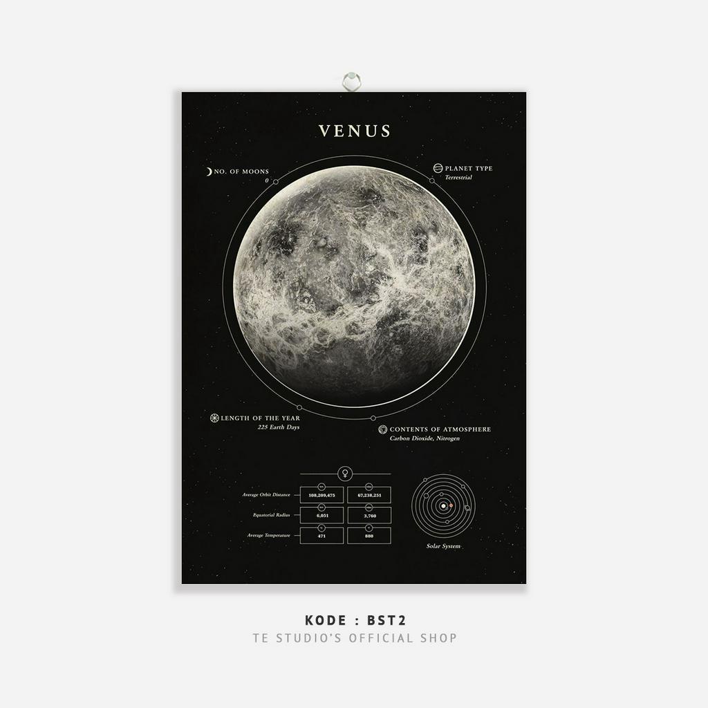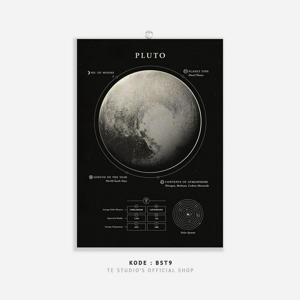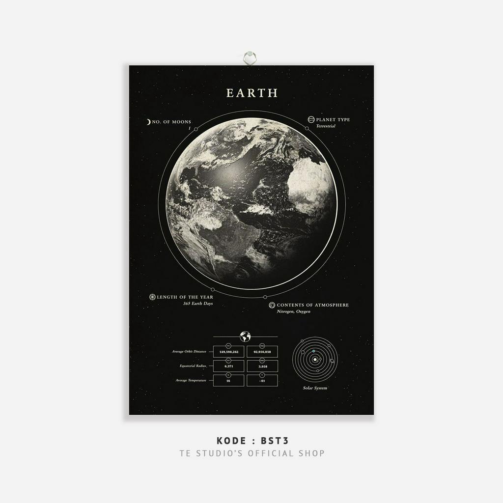 HIASAN DINDING Educational Poster Planet Wall Hanging Solar System Deep Black Wall Decor Moon Earth Sun Planet Natural Solar System - BST