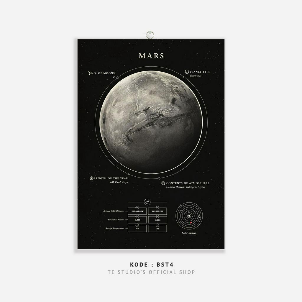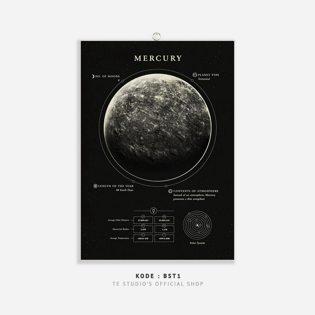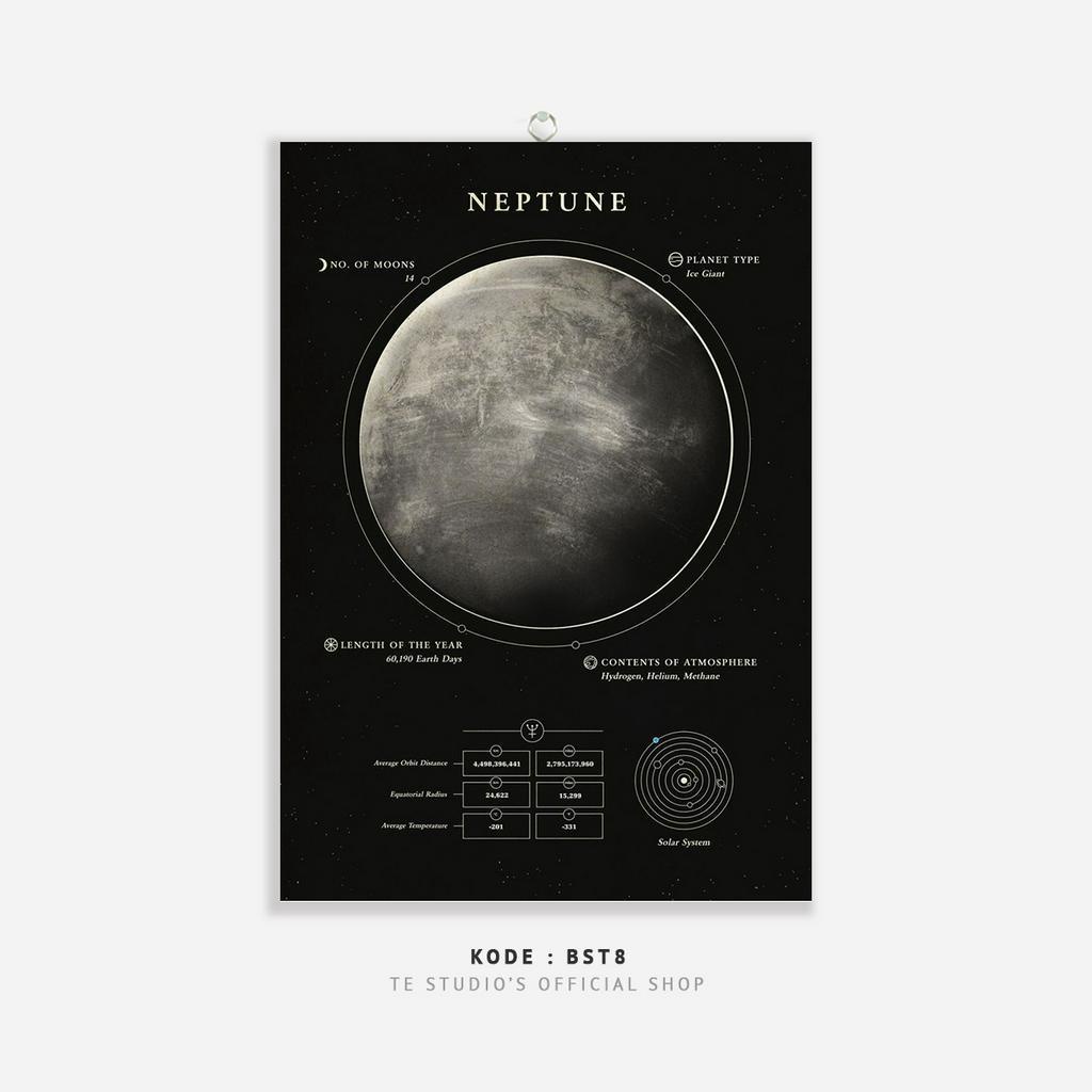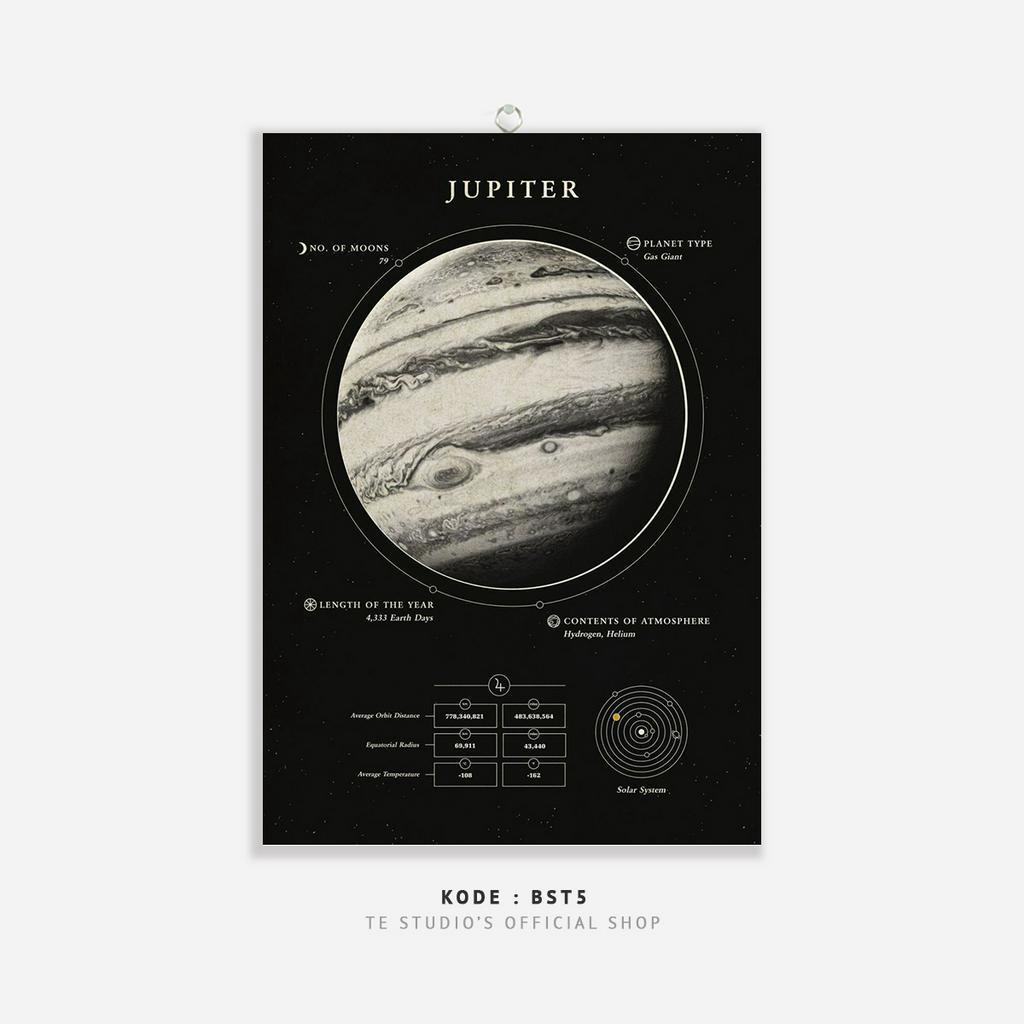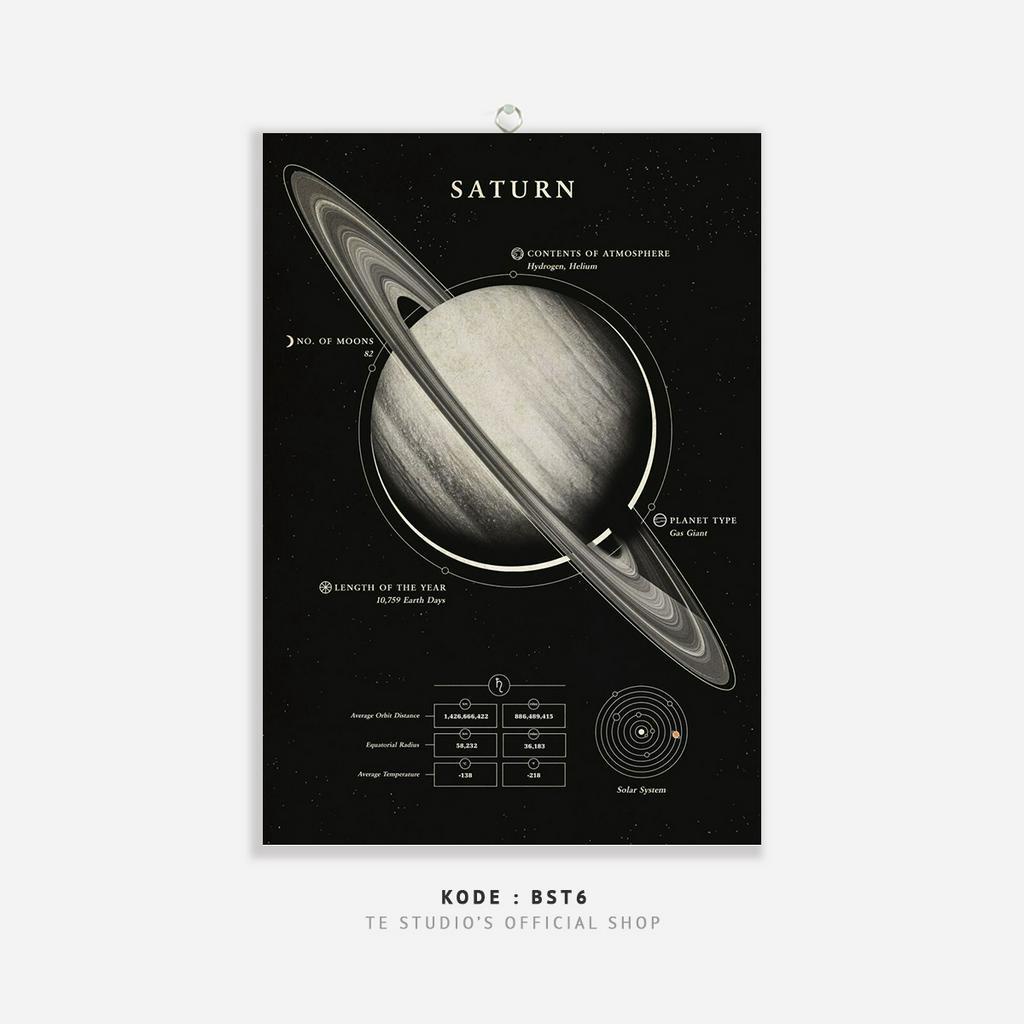 HIASAN DINDING Educational Poster Planet Wall Hanging Solar System Deep Black Wall Decor Moon Earth Sun Planet Natural Solar System - BST