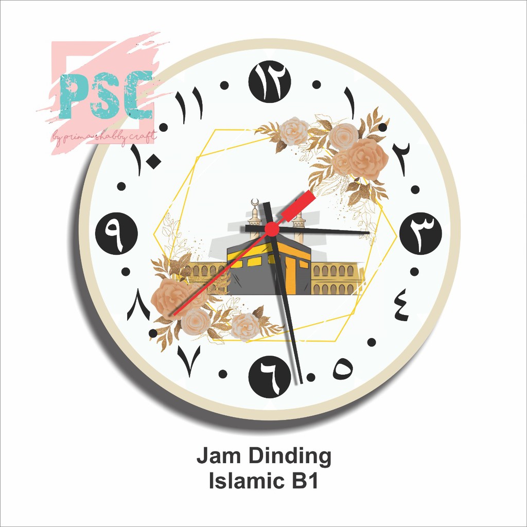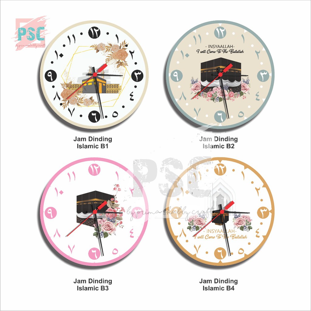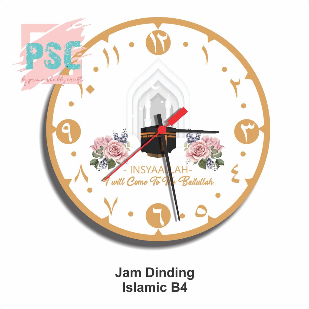 HIASAN DINDING KAYU Wall Hanging Poster Wood Display Analog Clock Round Islamic B 01 Shabby Home Room Decoration