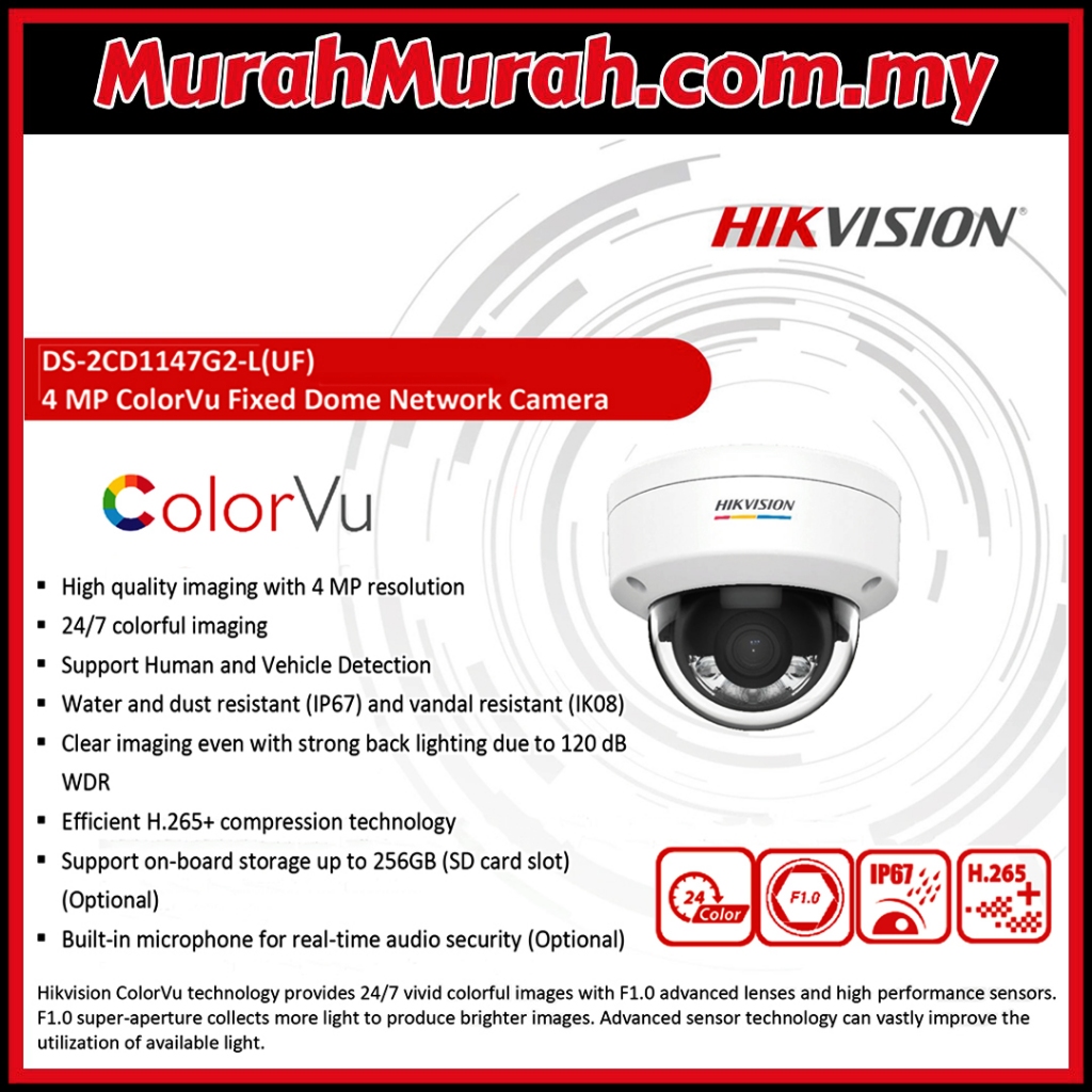 HIK HIKVISION DS-2CD1147G2-L 4.0MP IP Poe 24/7 FULL TIME COLORVU + 4MP 1440P HD PoE Indoor Network CAMERA
