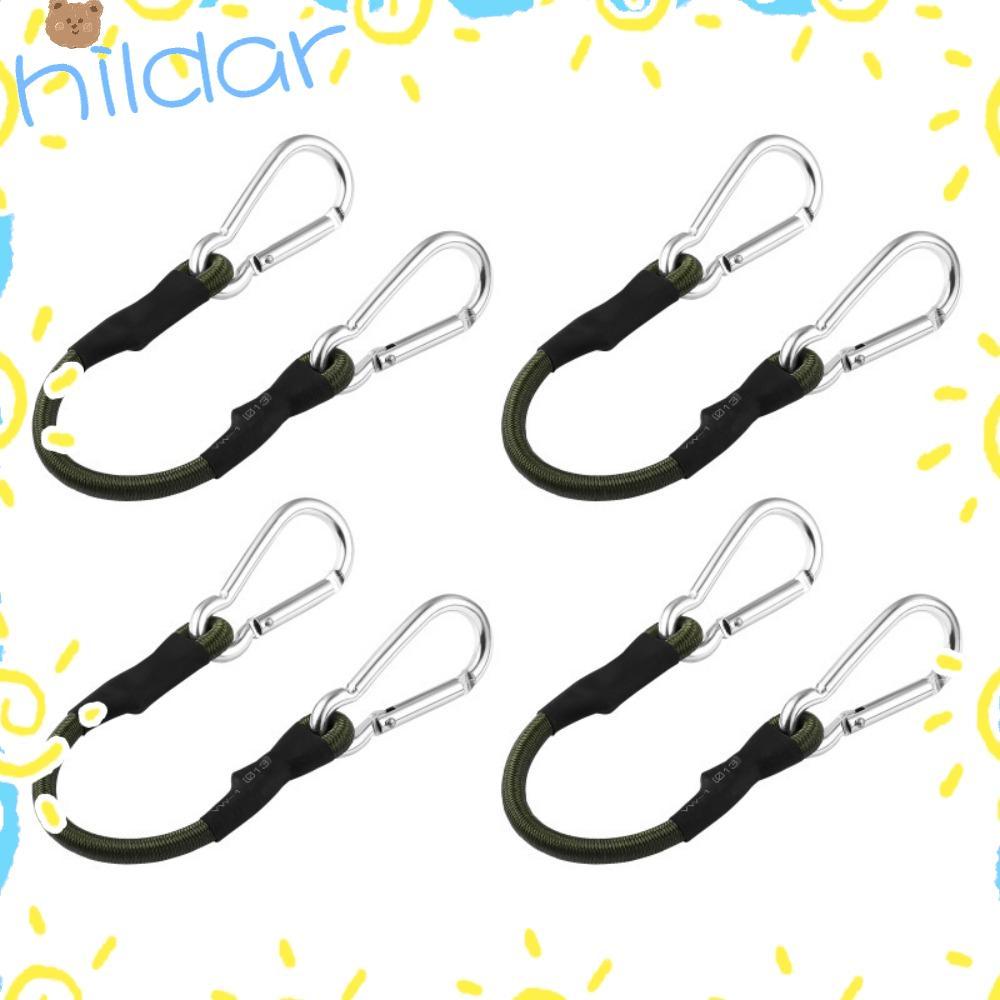 HILDAR Bungee Cord, Latex Metal Cords Carabiner, Cargo Silver Cords Carabiner Clip Outdoor