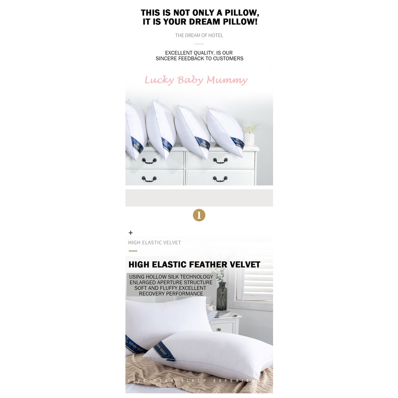 HILTON Pillow 5 Star Hotel Fabric / Silk Floss Pillow / Breathable Pillow / Bedding / Bedroom /Local Seller