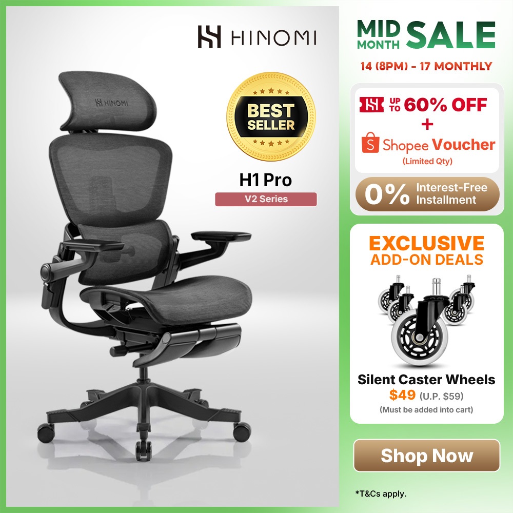 Hinomi H1Pro Ergonomic Chair Foldable, Home Office Chair With Footrest and Flip-up Armrest, Gaming Chair