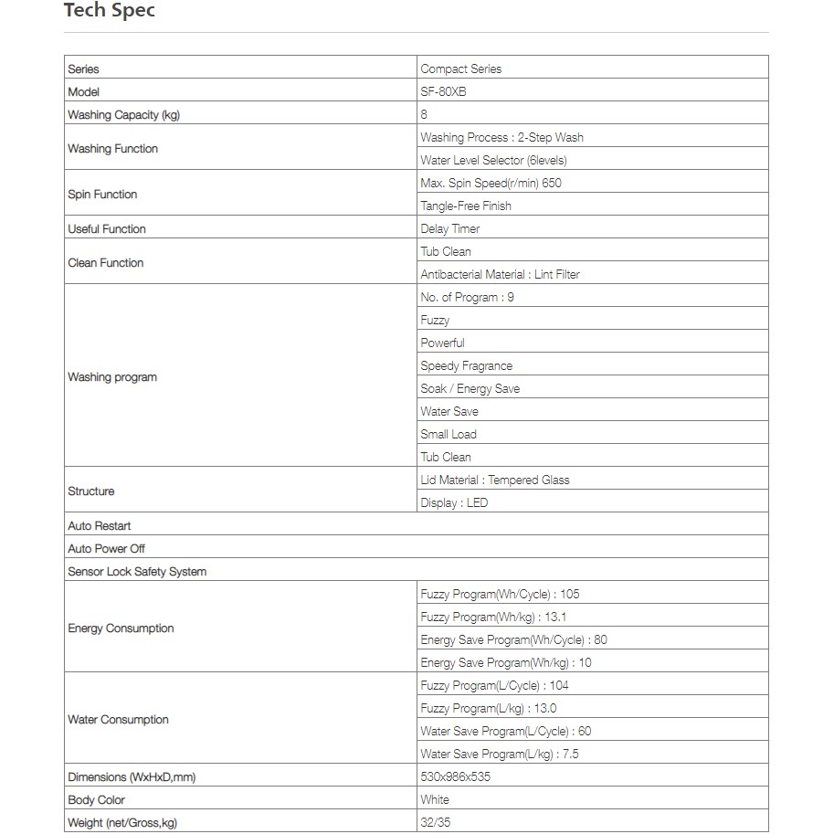HITACHI SF-80XB 8KG COMPACT TOP LOAD WASHING MACHINE WITH GLASS TOP