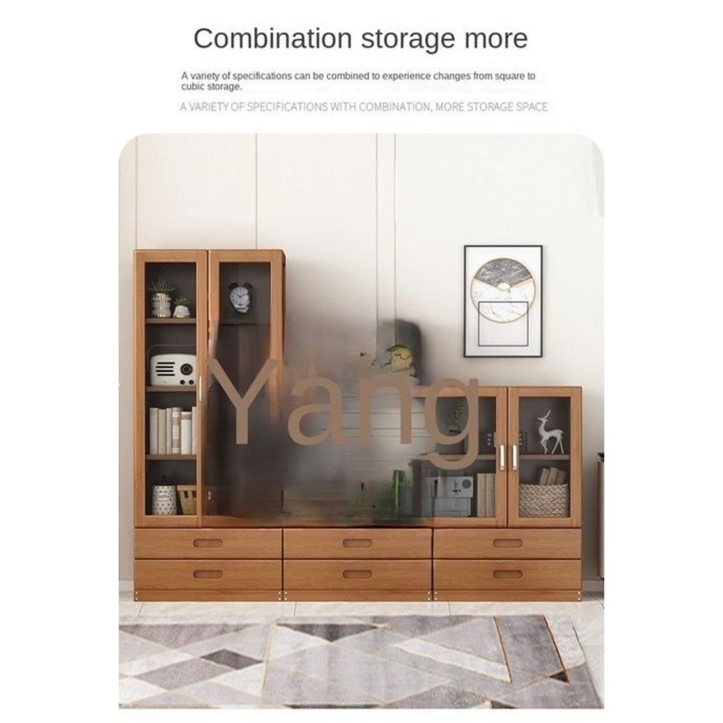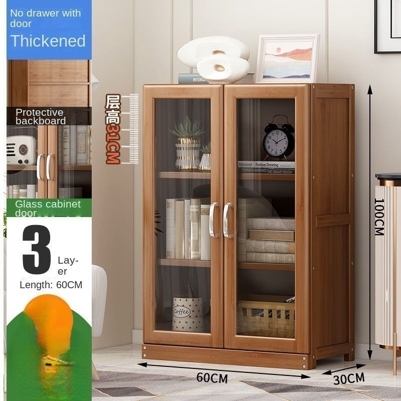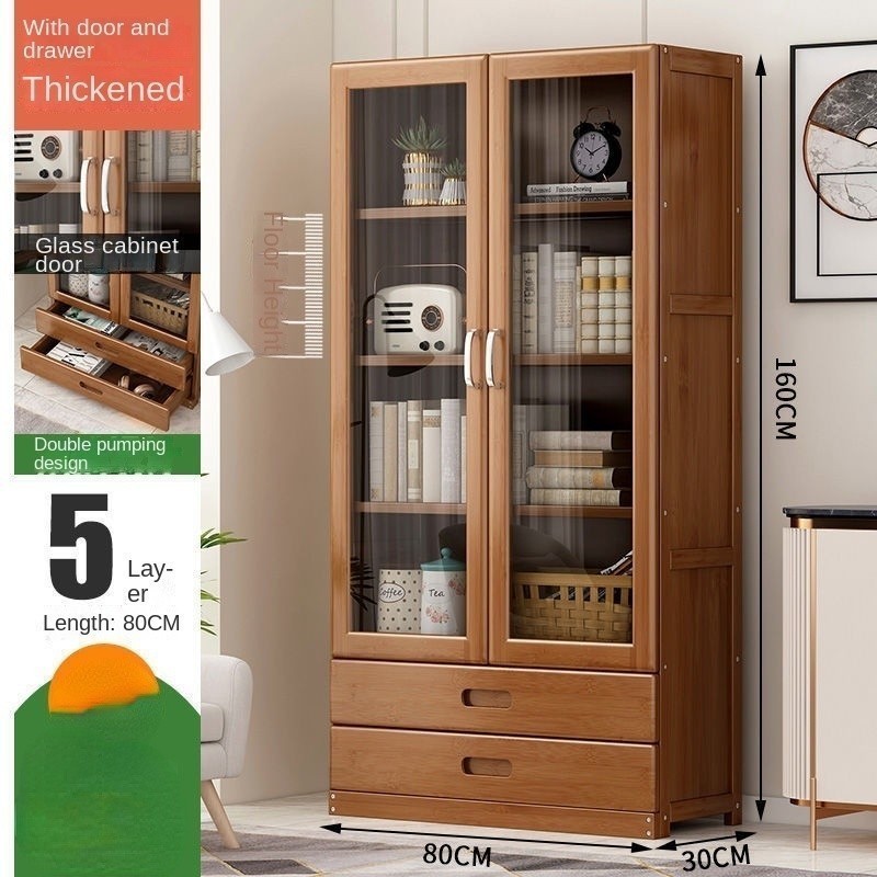 HK (Hot Selling)Bookshelf Desktop Storage Rack Glass Transparent Locker Solid Wood Bookcase With Door