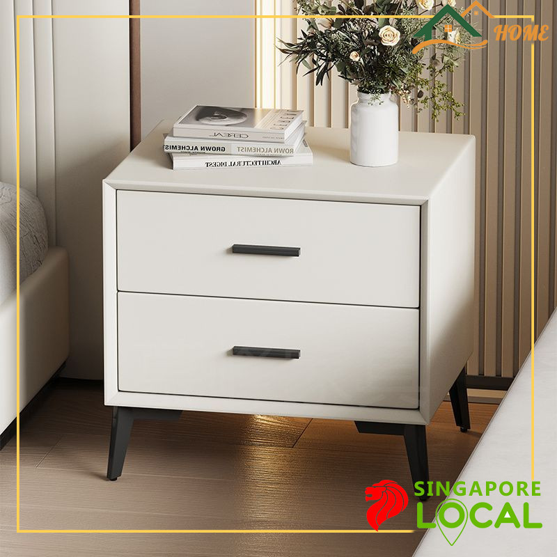 HK Modern Minimalist Bedside Table Light Luxury Leather Full Solid Wood Side Table Mini Ins Style Bedroom Storage Cabinet No Installation