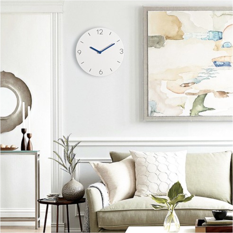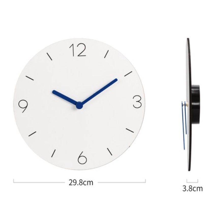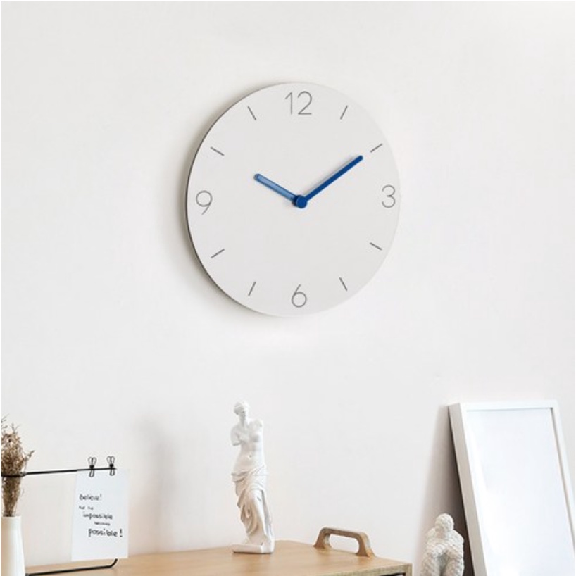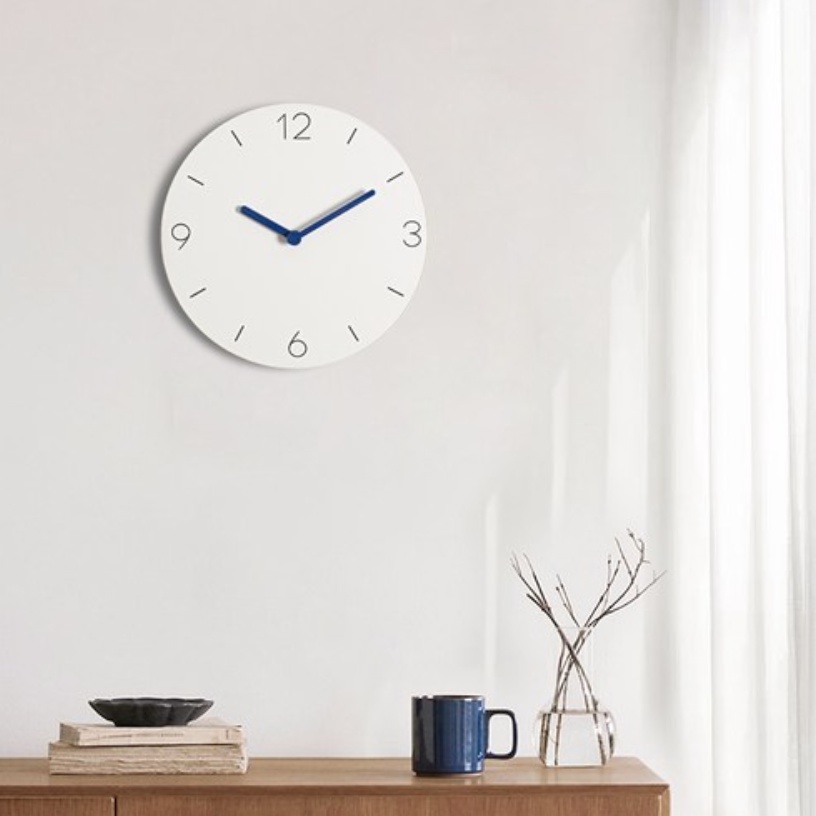 HOME PLANET Modern White & Blue Silent Wall Clock / Basic & Simple Non-ticking Wall Clocks / Stylish Minimalist White Clock / Minimalism Interior Design
