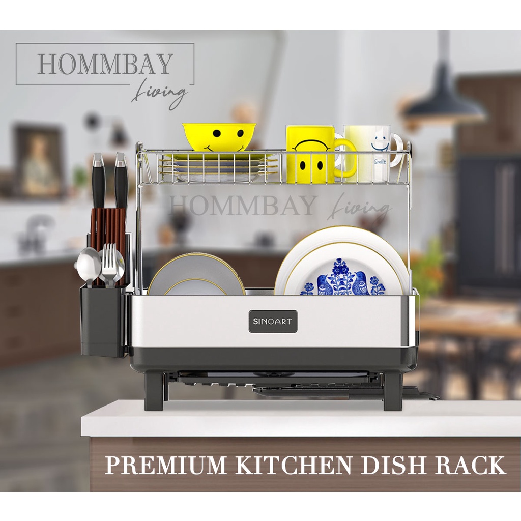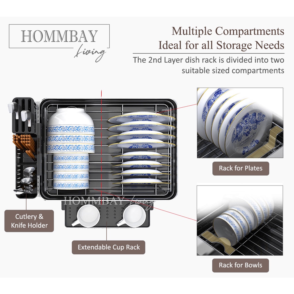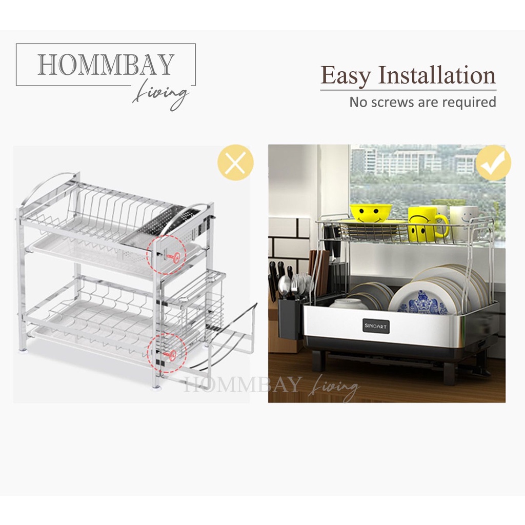 HOMMBAY Kitchen Rack , 2 Tier 304 Premium STAINLESS STEEL Dish Rack
