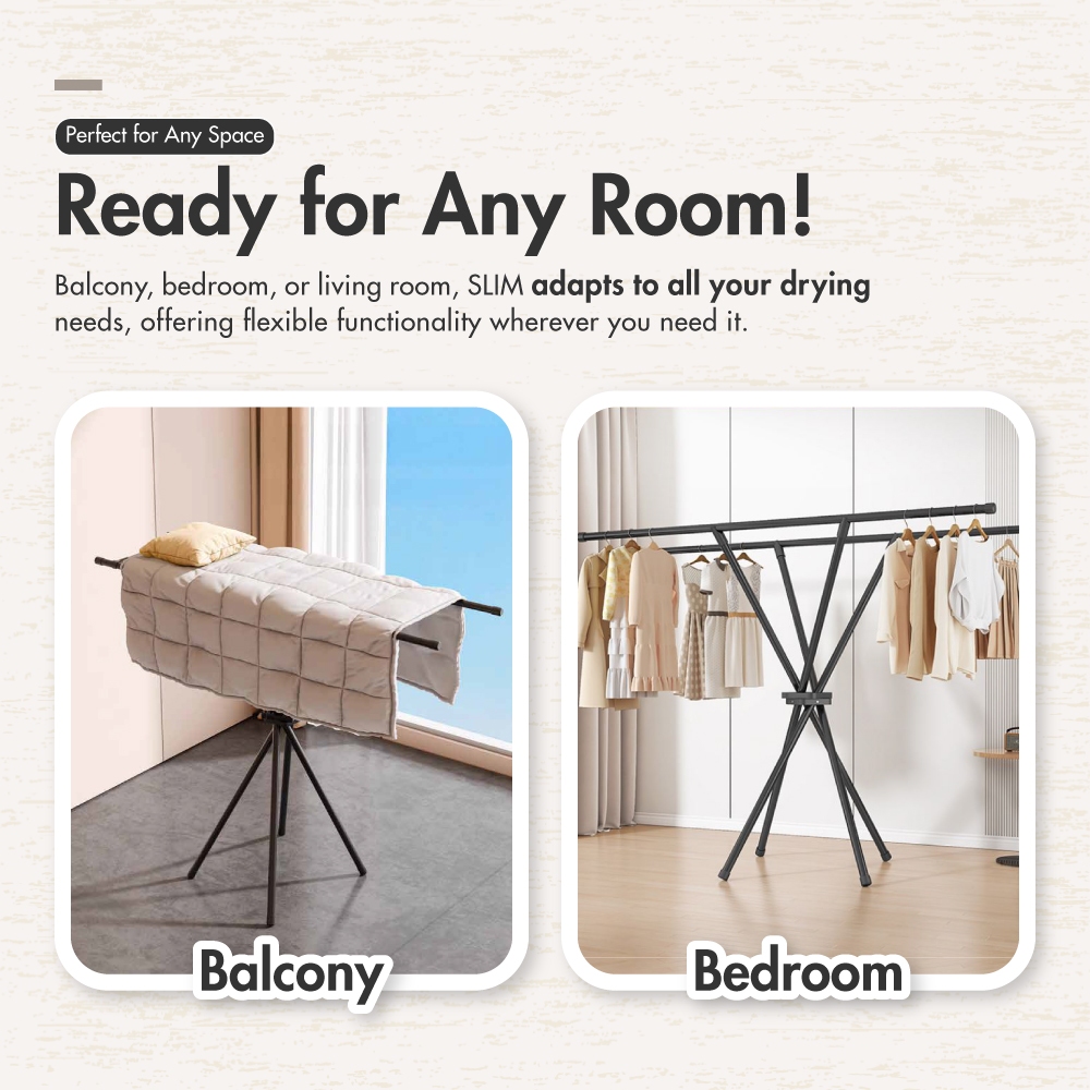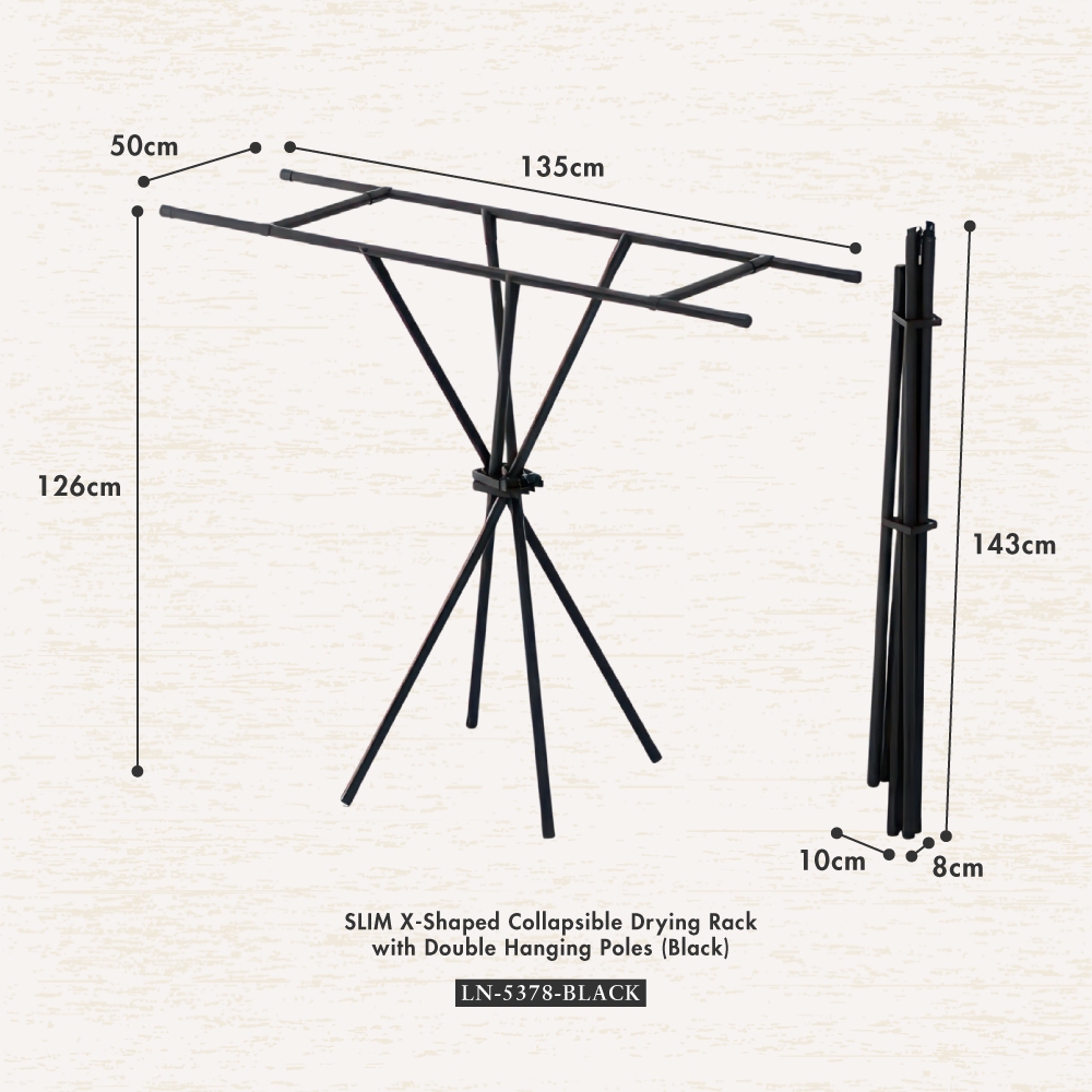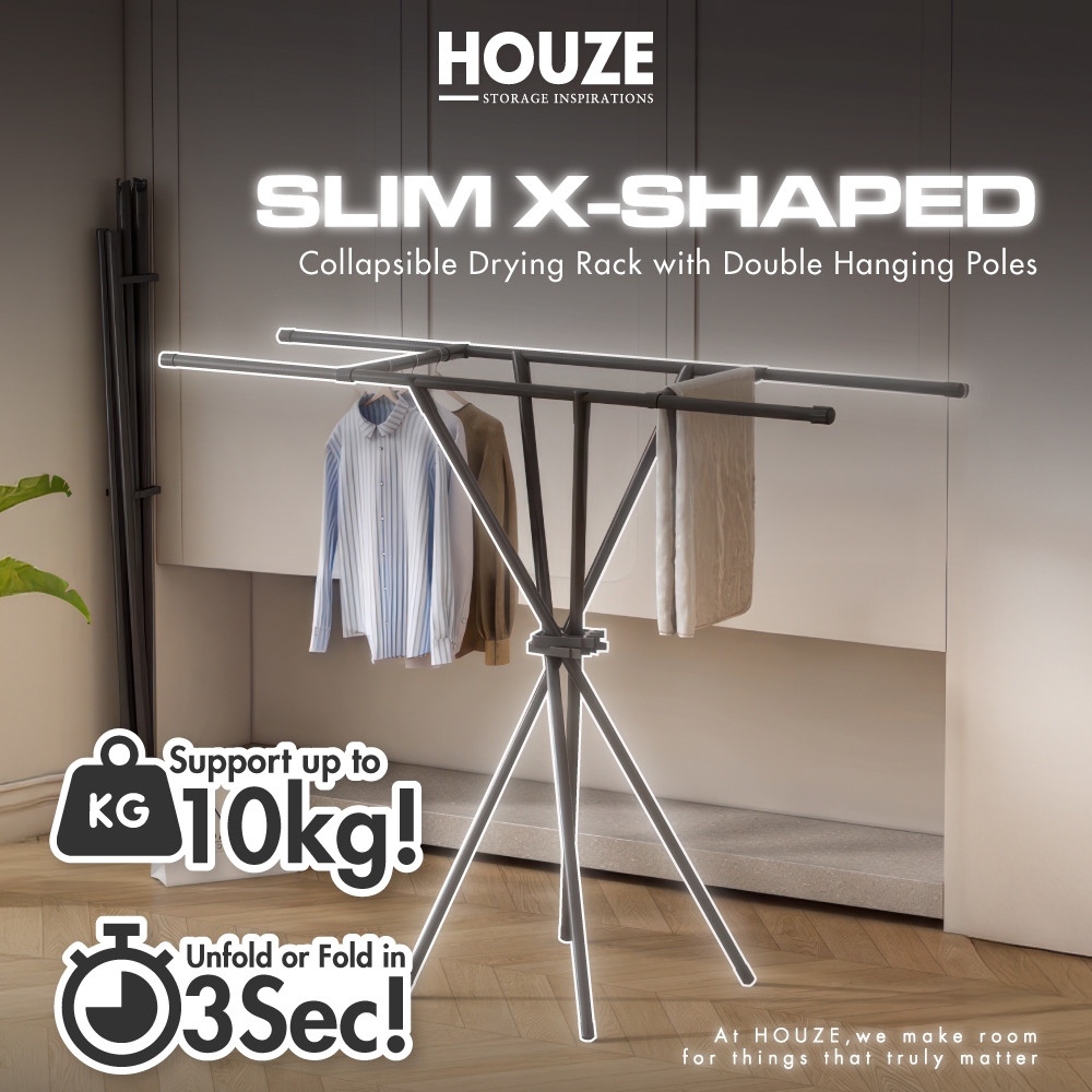 HOUZE - SLIM X-Shaped Collapsible Drying Rack with Double Hanging Poles - Laundry | Foldable | Space-Saving