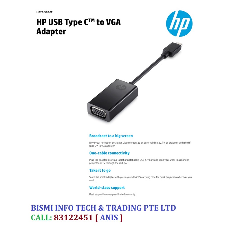 HP USB-C to VGA Adapter AVAILABLE STOCK 50 PCS SUITABLE FOR ALL TYPE-C LAPTOPS