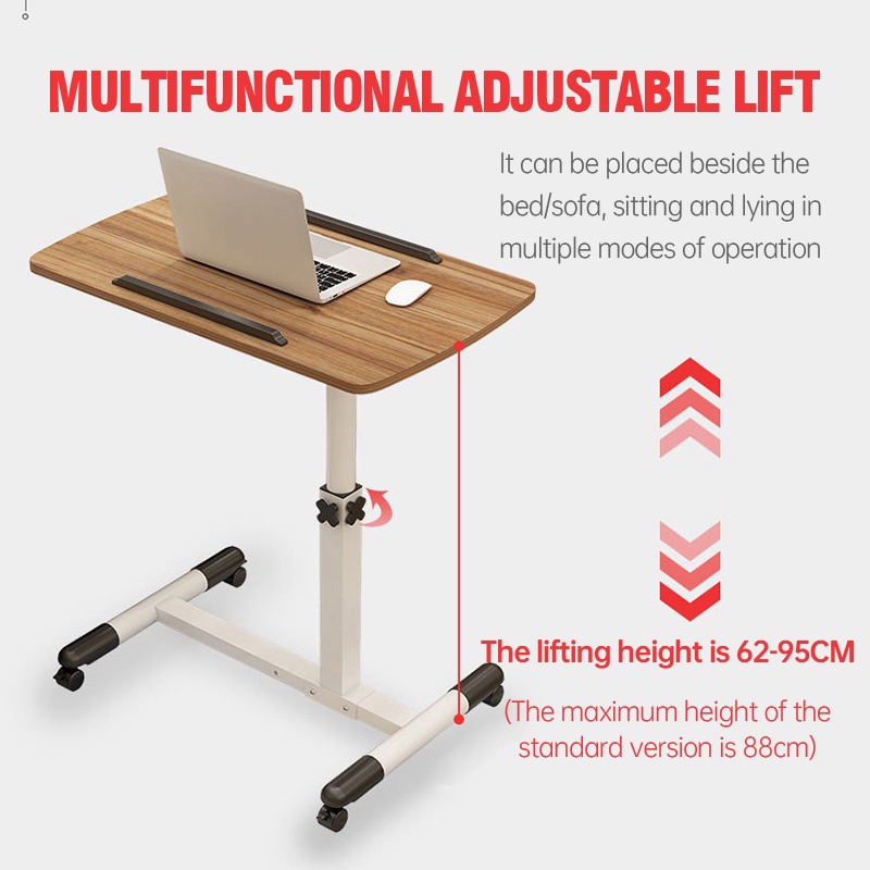 HS Foldable Table Movable Lifting Rotating Table Computer Table With Wheels Adjustable Bed Table Study Table Side Table