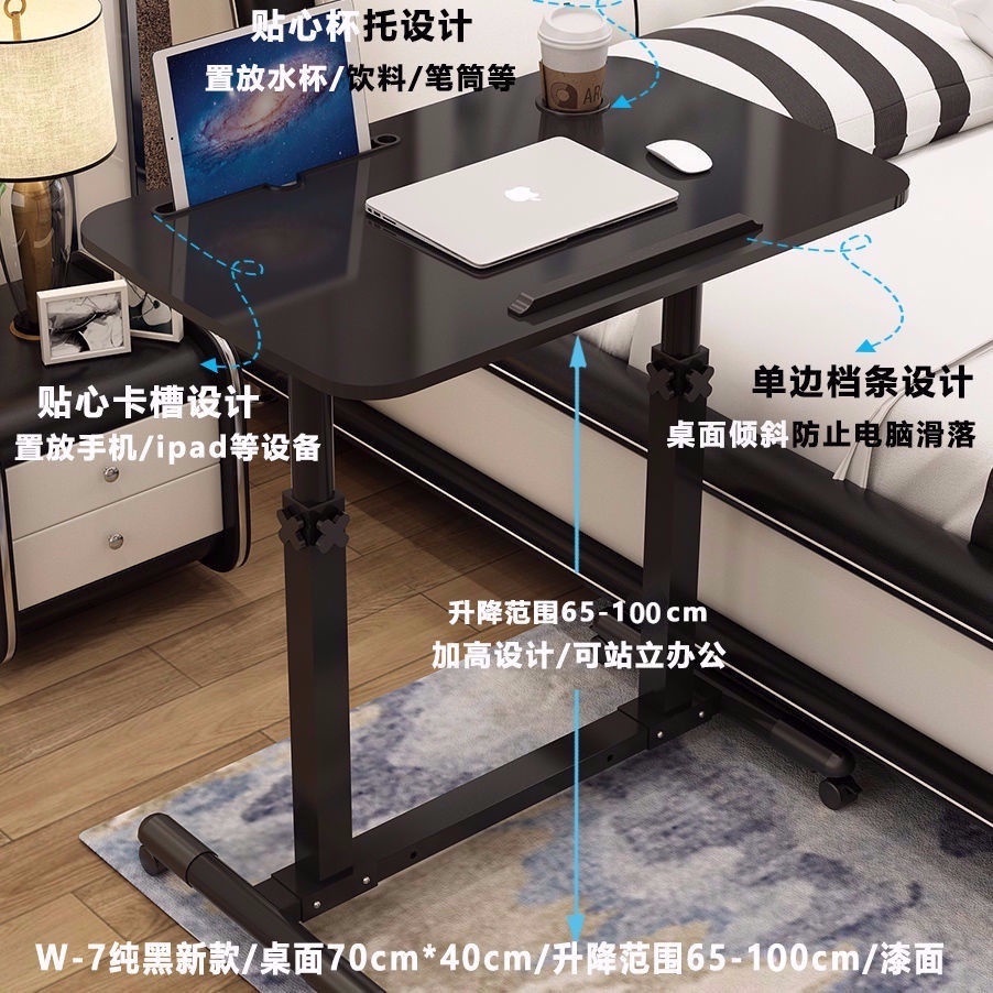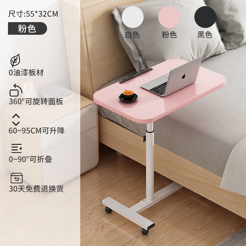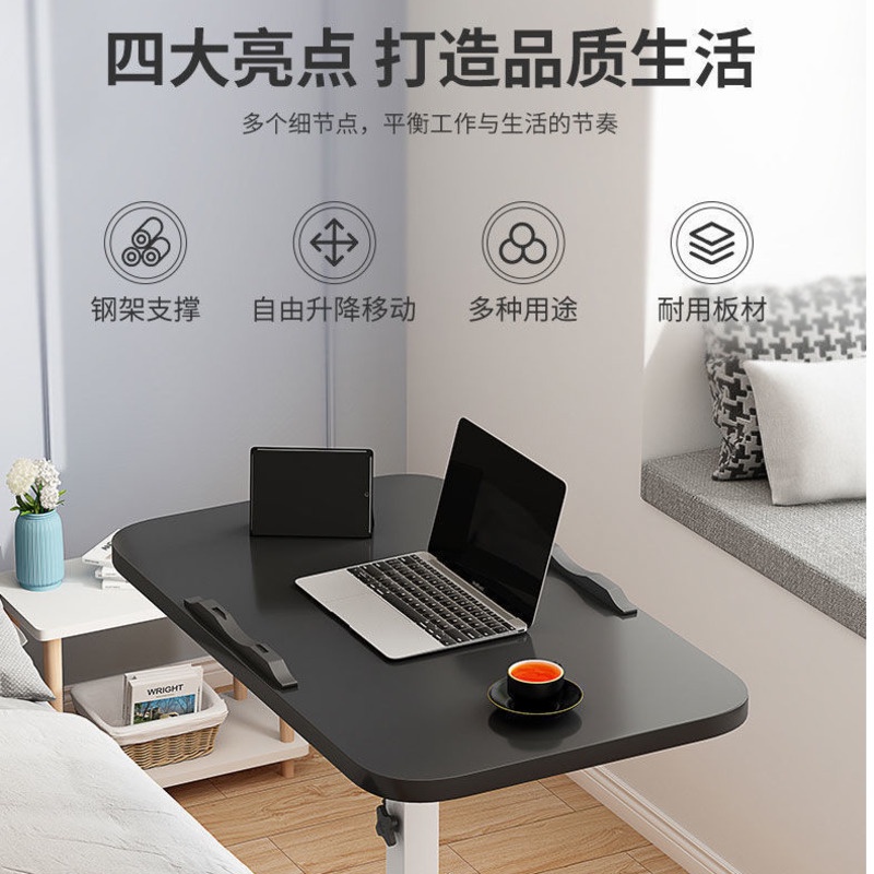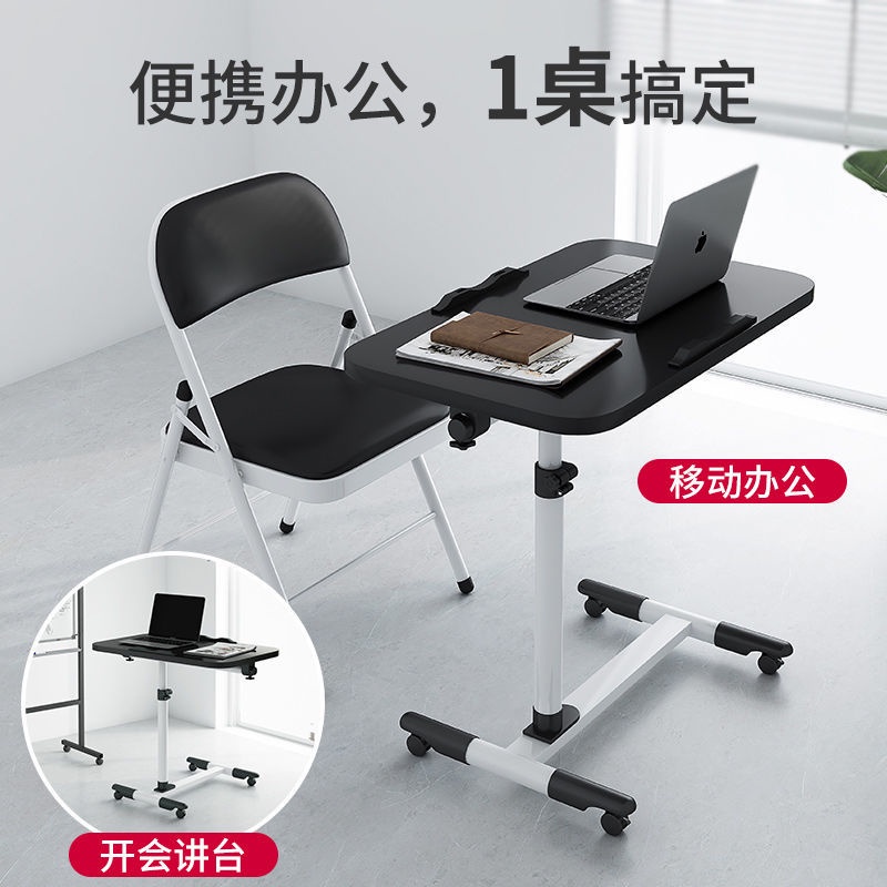 HS Liftable And Foldable Laptop Table Home Adjustable Mobile Desk Portable Rotating Writing Desk With Wheels Movable