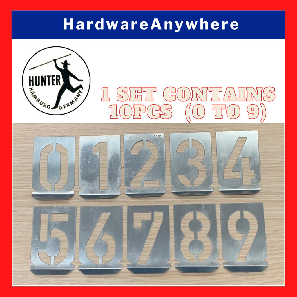 HUNTER Number Stencil Set [10 pieces from Number 1 to 10] Zinc Plated Number Stencil Kit