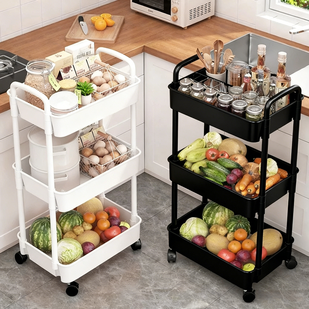 HXR 3/4/5 Tier Rolling Storage Trolley | Multilayer Organizer Rack | Kitchen/Bathroom/Living Room Basket Cart With Wheel