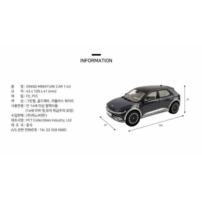 HYUNDAI 1:43 Scale IONIQ 5 Mini Toy Car / Die-cast Diecast Diecasting Miniature Car Figure Figures