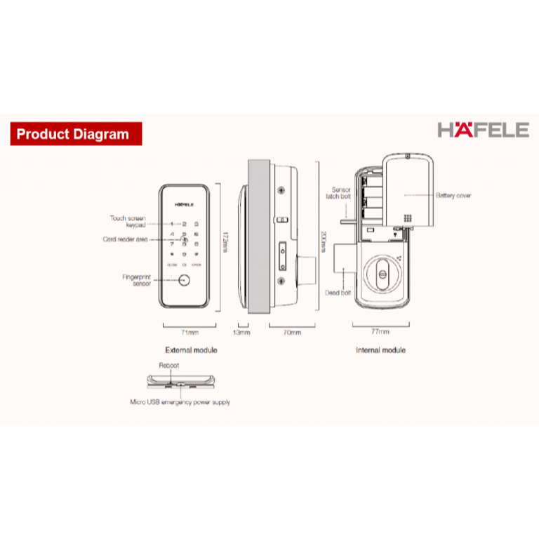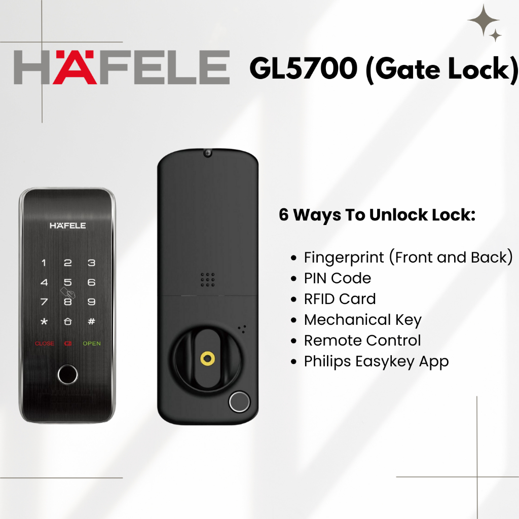 Hafele Digital Gate Lock GL5700 | Fingerprint | Pin Code | Card | Key | Include Installation | 3 Year Warranty