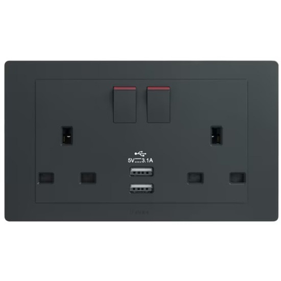 Hager Muse 13A Socket with USB Type A Charging Port Singapore Safety Mark