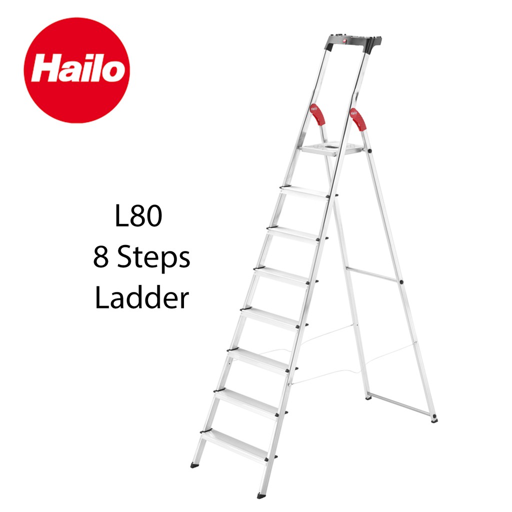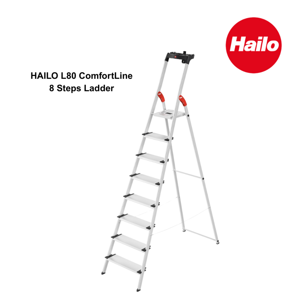 Hailo 8 Step Sturdy German Aluminum Household Premium Ladder - Standard Line / Comfortline - L60 / L80 - 8CM / 13 CM
