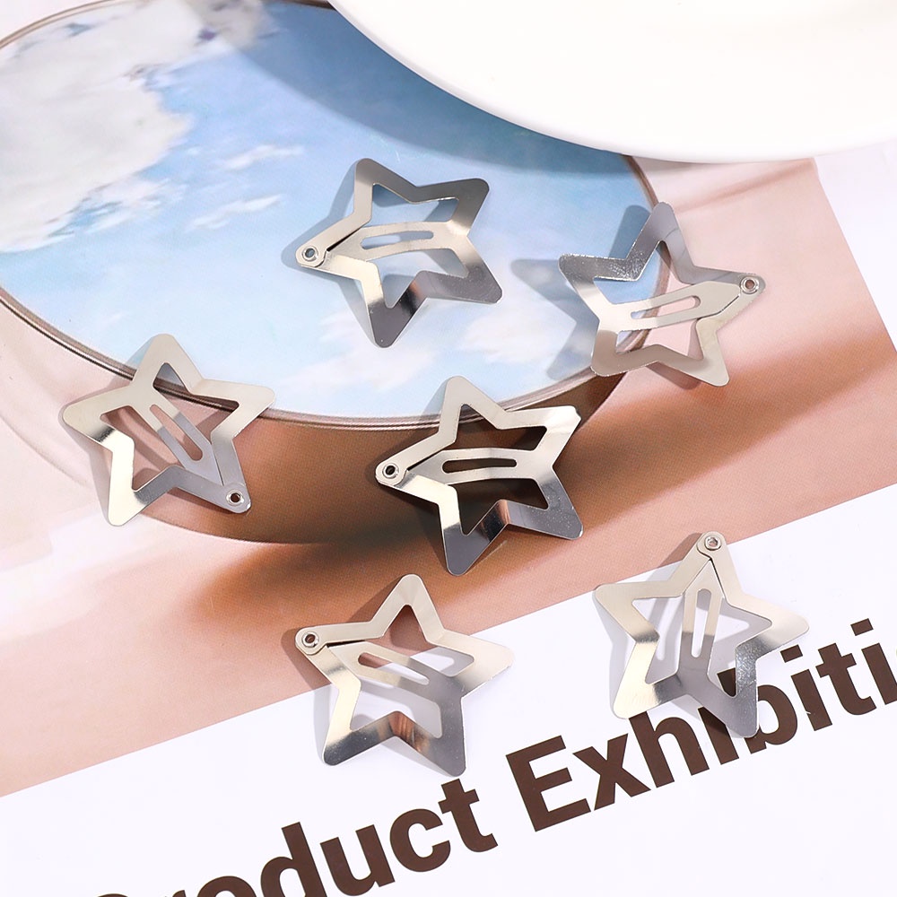 Hair Accessories Women Elegant Filigree Star Hair Clip Popular Metal Snap Headwear Hair Pins BB Barrettes 2/4Pcs Hairpin Simple Children Korean INS Style Ponytail Holder Silver