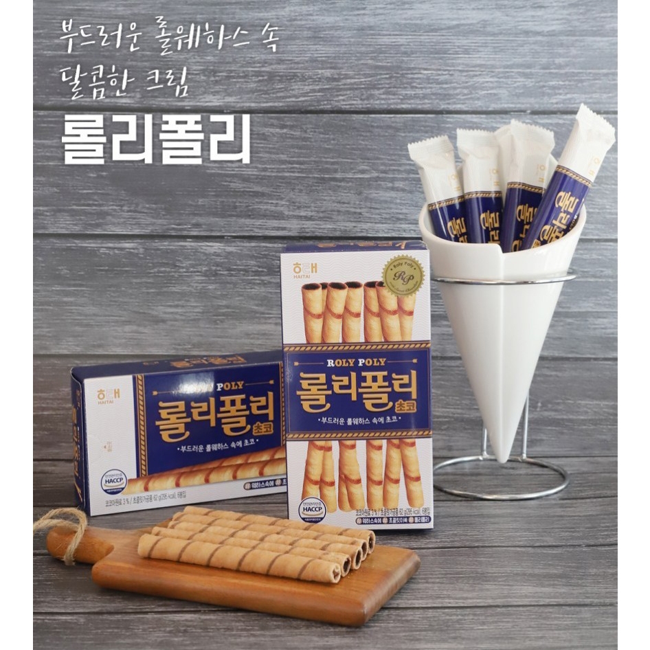 Haitai Lolly Polly Chocolate Wafer Rolls / Korean Crispy Snack 62g