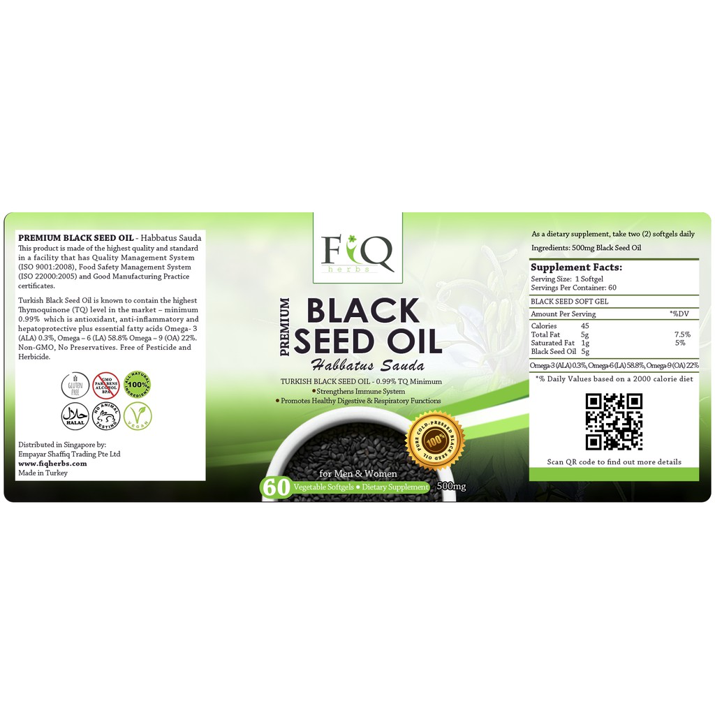 Halal Premium Turkish Black Seed Oil (Habbatus Sauda) 60 Softgels