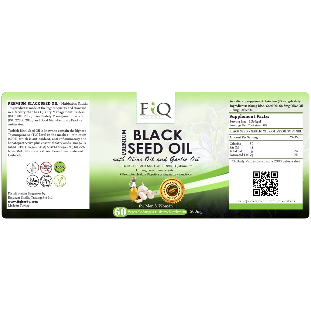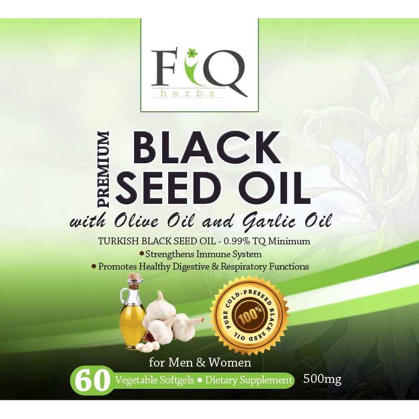Halal Premium Turkish Black Seed Oil with Olive Oil and Garlic Oil 60 Softgels