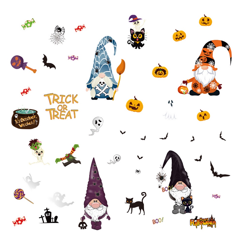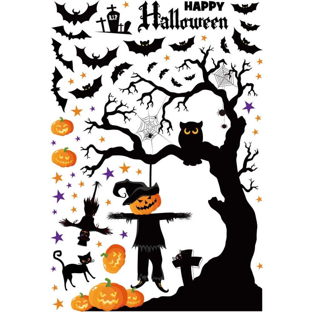 Halloween Cartoon Pumpkin Bat Ghost Witch Skull Window Stickers Glass Wall Decal Halloween Window Stickers Party Home Decor
